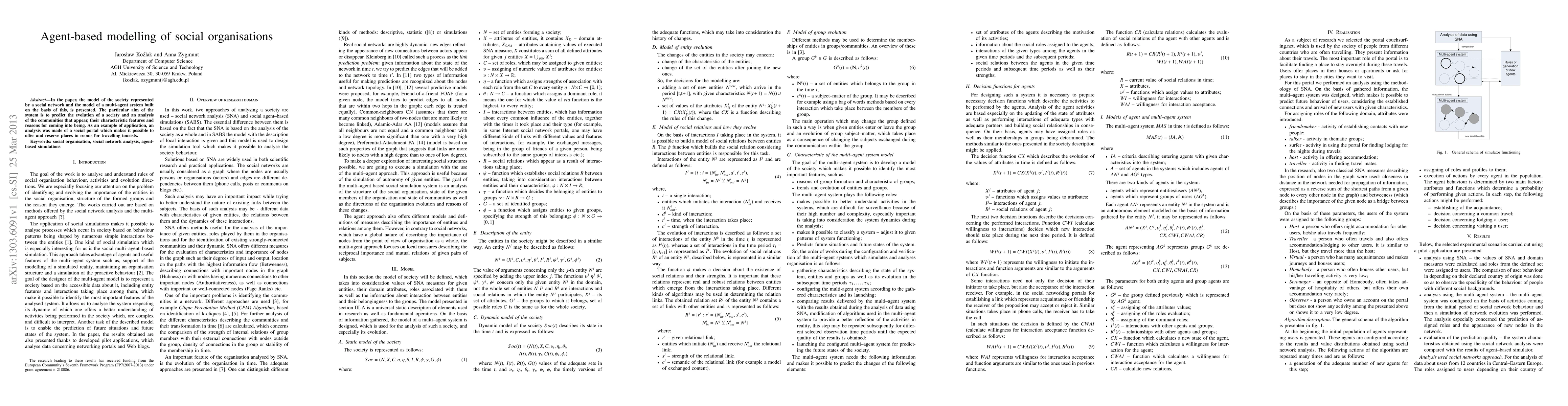 In the paper, the model of the society represented by a social network and the model of a multi-agent system built on the basis of this, is presented. The particular aim of the system is to predict the evolution of a society and an analysis of the communities that appear, their characteristic features and reasons for coming into being. As an example of application, an analysis was made of a social portal which makes it possible to offer and reserve places in rooms for travelling tourists