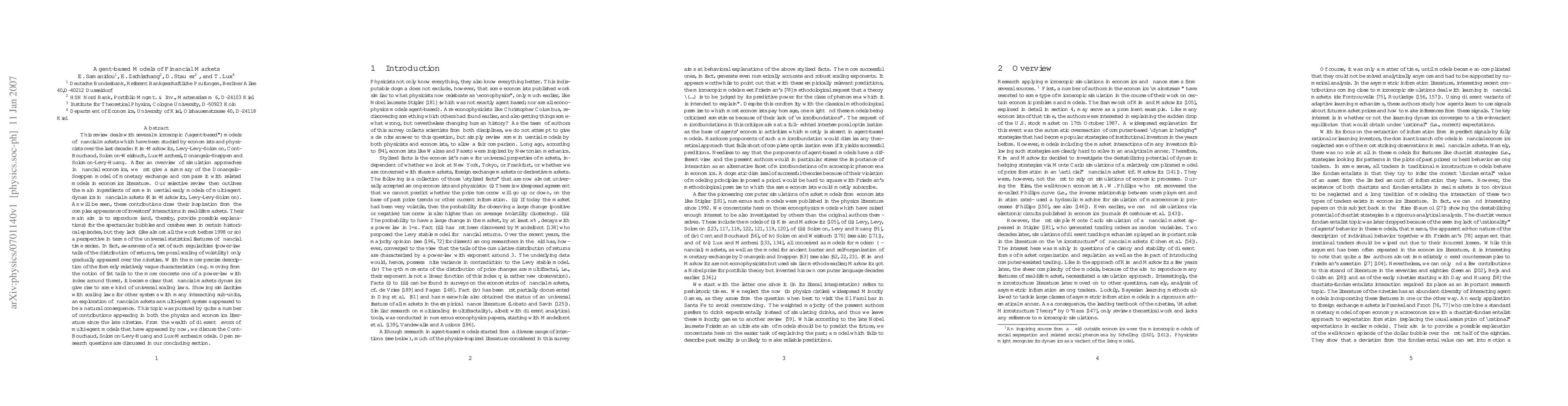 This review examines various agent-based models of financial markets, focusing on the microscopic interactions of investors. It highlights influential models like Kim-Markowitz and Levy-Levy-Solomon, aiming to explain market bubbles and crashes, though lacking a universal statistical perspective.