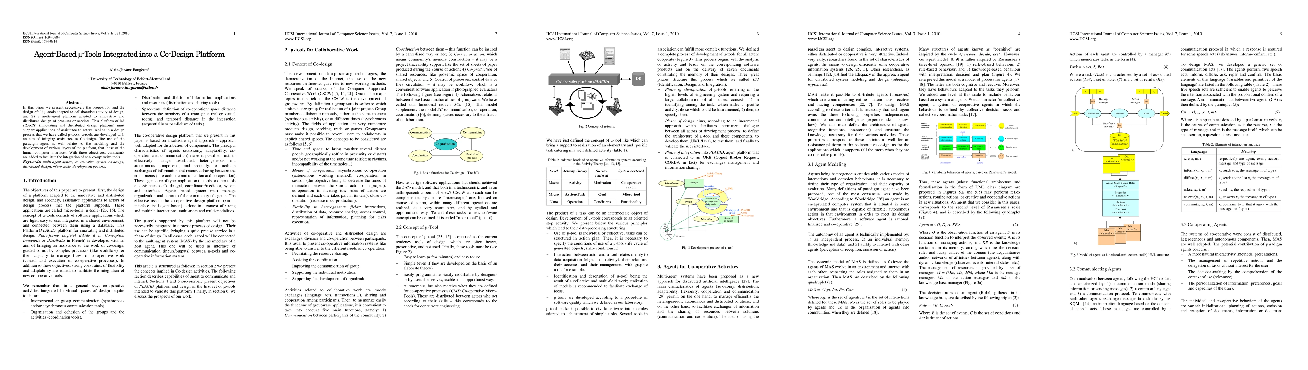 This paper proposes μ-tools for collaborative design and a multi-agent platform named PLACID to support distributed design processes. The μ-tools aim to assist actors in the co-design process, while the agent-based platform facilitates the integration of new cooperative tools.
