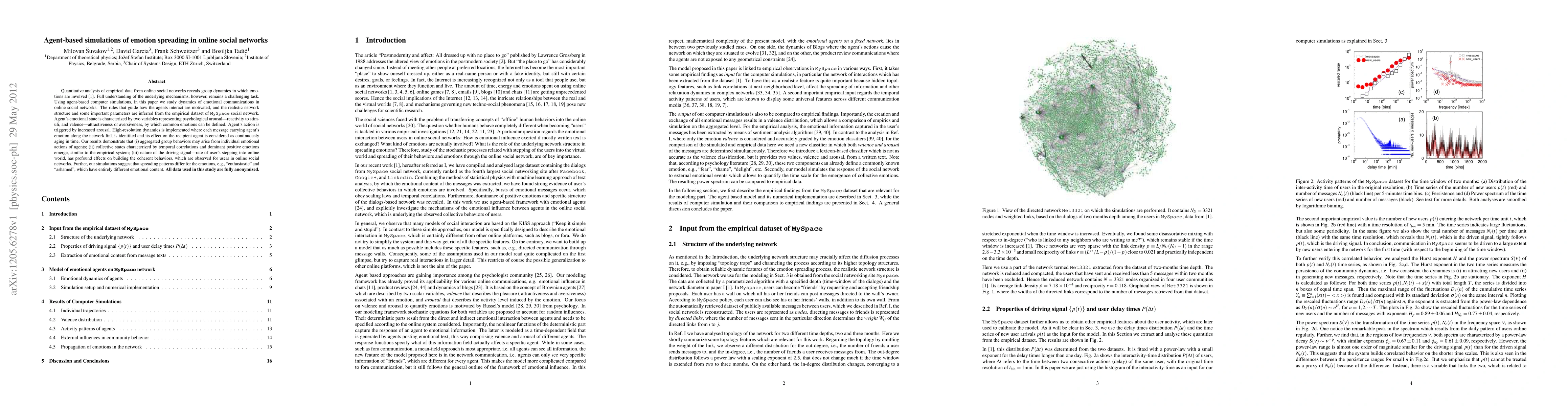 This paper uses agent-based simulations to explore how emotions spread in online social networks, focusing on the dynamics of emotional communications. The study reveals that individual emotional actions can lead to aggregated group behaviors, and collective states with dominant positive emotions emerge, mirroring empirical observations. The research highlights the impact of user activity rates on coherent behaviors and shows differing spreading patterns for different emotions.