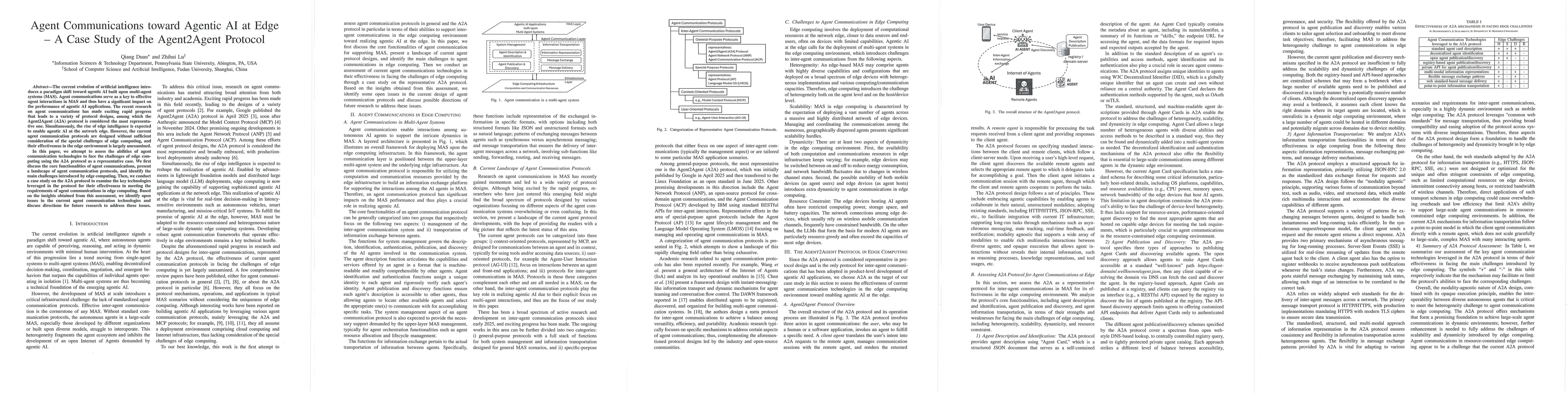 The current evolution of artificial intelligence introduces a paradigm shift toward agentic AI built upon multi-agent systems (MAS). Agent communications serve as a key to effective agent interactions in MAS and thus have a significant impact on the performance of agentic AI applications. The recent research on agent communications has made exciting rapid progress that leads to a variety of protocol designs, among which the Agent2Agent (A2A) protocol is considered the most representative one. Simultaneously, the rise of edge intelligence is expected to enable agentic AI at the network edge. However, the current agent communication protocols are designed without sufficient consideration of the special challenges of edge computing, and their effectiveness in the edge environment is largely unexamined. In this paper, we attempt to assess the abilities of agent communication technologies to face the challenges of edge computing using the A2A protocol as a representative case. We first discuss the core functionalities of agent communications, present a landscape of agent communication protocols, and identify the main challenges introduced by edge computing. Then, we conduct a case study on the A2A protocol to examine the key technologies leveraged in the protocol for their effectiveness in meeting the requirements of agent communications in edge computing. Based on the insights obtained from this assessment, we identify open issues in the current agent communication technologies and discuss directions for future research to address these issues.