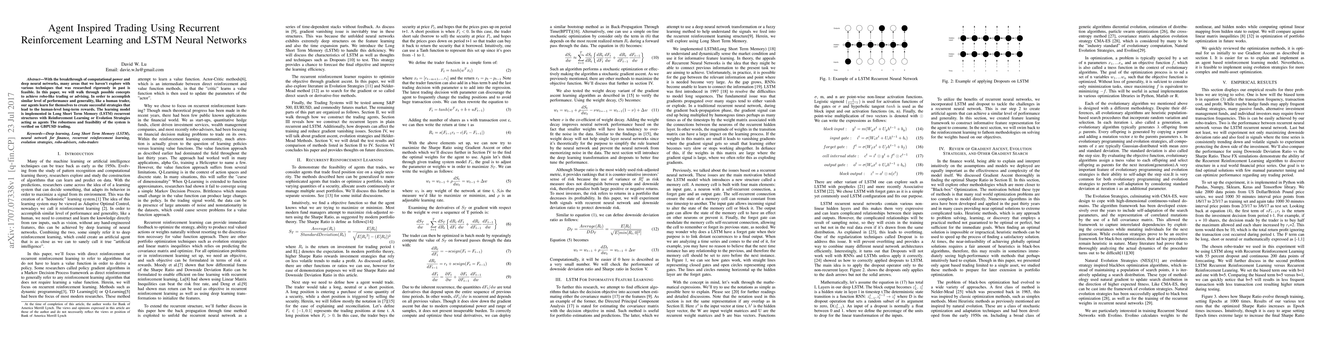 This paper explores agent-based trading using recurrent reinforcement learning with LSTM neural networks to develop robo-advisors capable of creating successful trading strategies. The model's robustness is demonstrated through GBPUSD trading performance.