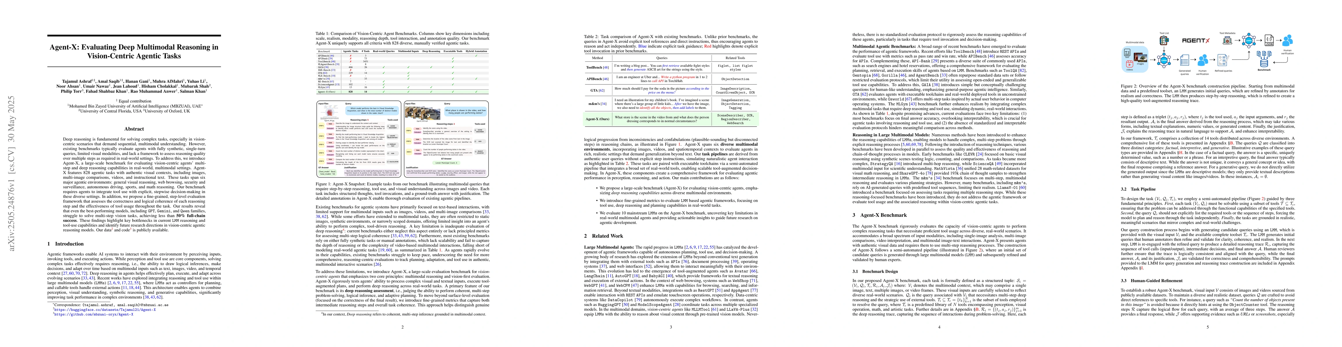 Agent-X, a comprehensive benchmark for evaluating deep multimodal reasoning in vision-centric agentic tasks, along with a fine-grained, step-level evaluation framework.