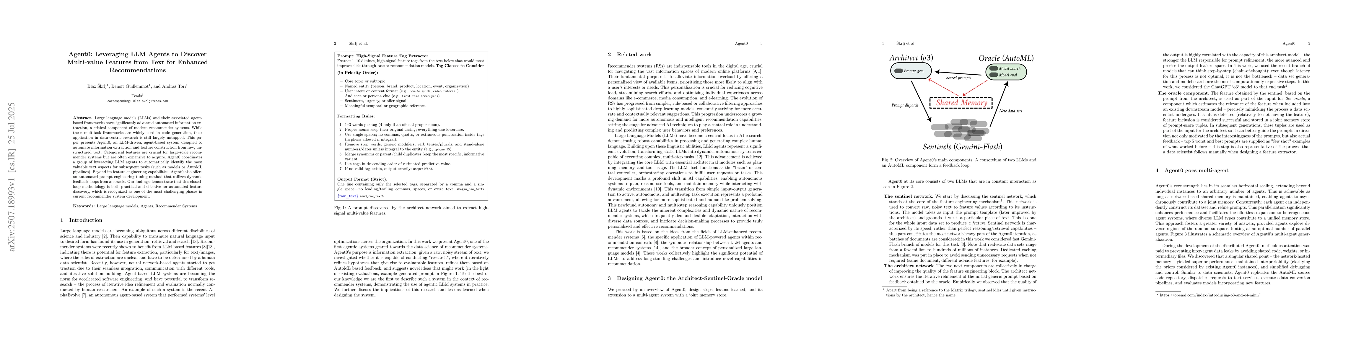 Large language models (LLMs) and their associated agent-based frameworks have significantly advanced automated information extraction, a critical component of modern recommender systems. While these multitask frameworks are widely used in code generation, their application in data-centric research is still largely untapped. This paper presents Agent0, an LLM-driven, agent-based system designed to automate information extraction and feature construction from raw, unstructured text. Categorical features are crucial for large-scale recommender systems but are often expensive to acquire. Agent0 coordinates a group of interacting LLM agents to automatically identify the most valuable text aspects for subsequent tasks (such as models or AutoML pipelines). Beyond its feature engineering capabilities, Agent0 also offers an automated prompt-engineering tuning method that utilizes dynamic feedback loops from an oracle. Our findings demonstrate that this closed-loop methodology is both practical and effective for automated feature discovery, which is recognized as one of the most challenging phases in current recommender system development.