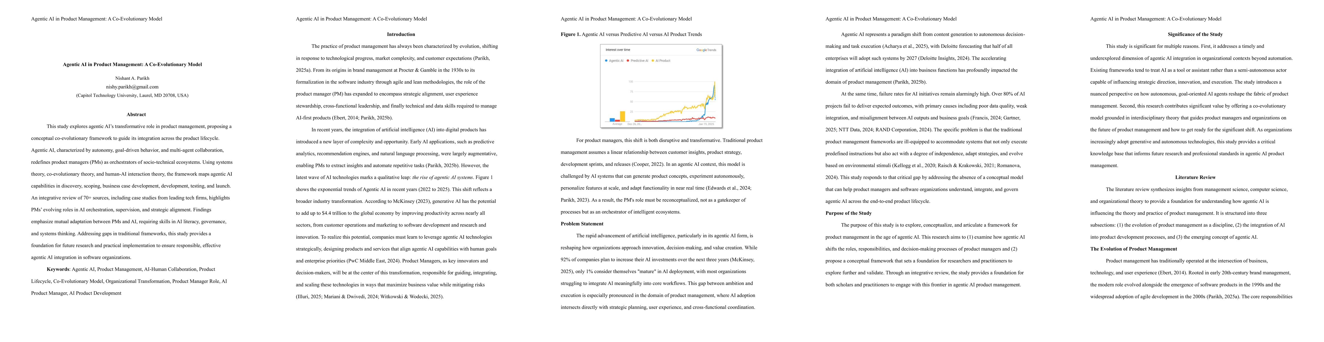 This study explores agentic AI's transformative role in product management, proposing a conceptual co-evolutionary framework to guide its integration across the product lifecycle. Agentic AI, characterized by autonomy, goal-driven behavior, and multi-agent collaboration, redefines product managers (PMs) as orchestrators of socio-technical ecosystems. Using systems theory, co-evolutionary theory, and human-AI interaction theory, the framework maps agentic AI capabilities in discovery, scoping, business case development, development, testing, and launch. An integrative review of 70+ sources, including case studies from leading tech firms, highlights PMs' evolving roles in AI orchestration, supervision, and strategic alignment. Findings emphasize mutual adaptation between PMs and AI, requiring skills in AI literacy, governance, and systems thinking. Addressing gaps in traditional frameworks, this study provides a foundation for future research and practical implementation to ensure responsible, effective agentic AI integration in software organizations.