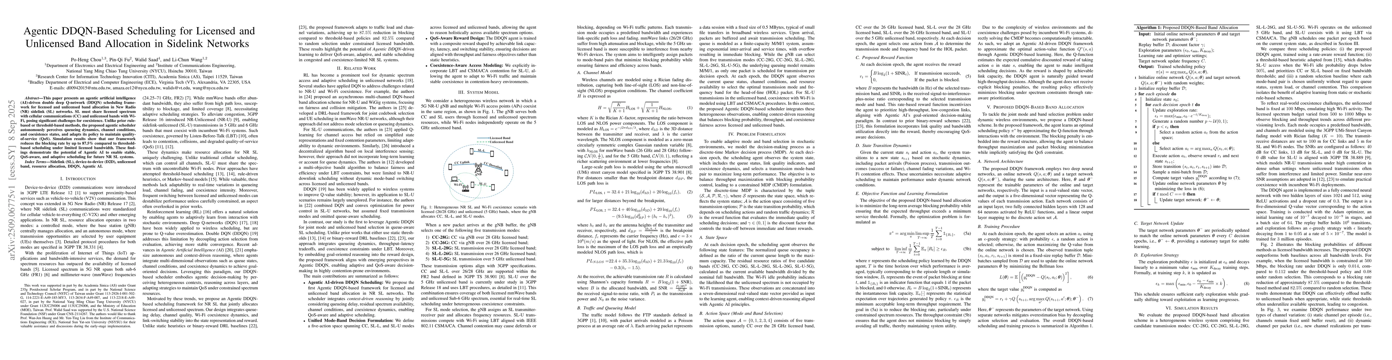 This paper presents an agentic artificial intelligence (AI)-driven double deep Q-network (DDQN) scheduling framework for licensed and unlicensed band allocation in New Radio (NR) sidelink (SL) networks. SL must share licensed spectrum with cellular communications (CC) and unlicensed bands with Wi-Fi, posing significant challenges for coexistence. Unlike prior rule-based or threshold-based methods, the proposed agentic scheduler autonomously perceives queueing dynamics, channel conditions, and coexistence states, and adapts its policy to maintain quality-of-service (QoS). Simulation results show that our framework reduces the blocking rate by up to 87.5% compared to threshold-based scheduling under limited licensed bandwidth. These findings demonstrate the potential of Agentic AI to enable stable, QoS-aware, and adaptive scheduling for future NR SL systems.
