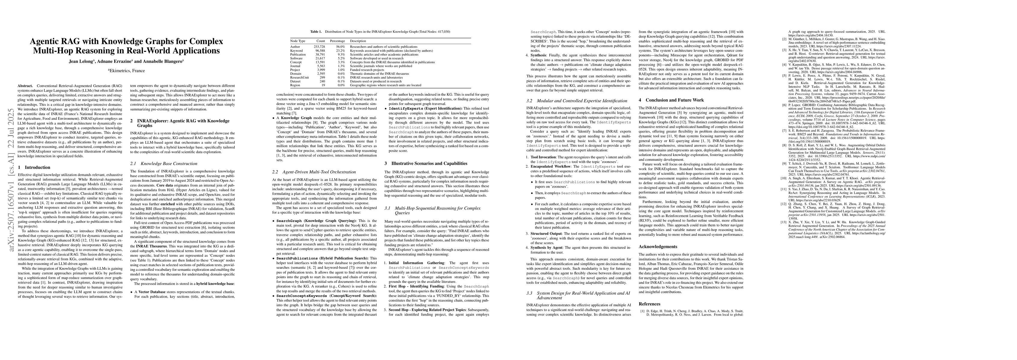 Conventional Retrieval-Augmented Generation (RAG) systems enhance Large Language Models (LLMs) but often fall short on complex queries, delivering limited, extractive answers and struggling with multiple targeted retrievals or navigating intricate entity relationships. This is a critical gap in knowledge-intensive domains. We introduce INRAExplorer, an agentic RAG system for exploring the scientific data of INRAE (France's National Research Institute for Agriculture, Food and Environment). INRAExplorer employs an LLM-based agent with a multi-tool architecture to dynamically engage a rich knowledge base, through a comprehensive knowledge graph derived from open access INRAE publications. This design empowers INRAExplorer to conduct iterative, targeted queries, retrieve exhaustive datasets (e.g., all publications by an author), perform multi-hop reasoning, and deliver structured, comprehensive answers. INRAExplorer serves as a concrete illustration of enhancing knowledge interaction in specialized fields.