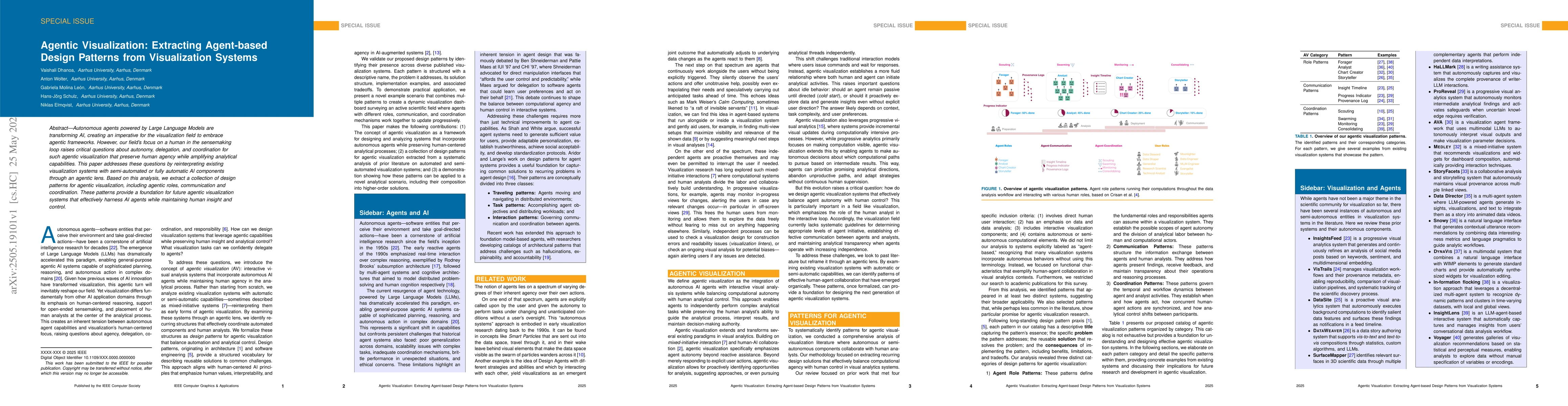 The paper reinterprets existing visualization systems with semi-automated or fully automatic AI components through an agentic lens to extract design patterns.