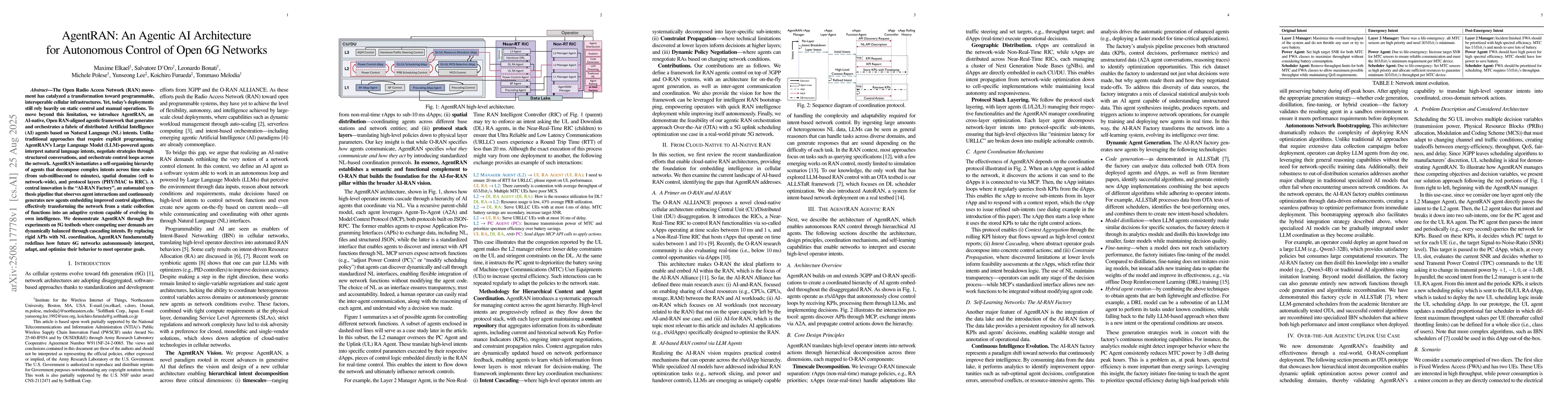 The Open RAN movement has catalyzed a transformation toward programmable, interoperable cellular infrastructures. Yet, today's deployments still rely heavily on static control and manual operations. To move beyond this limitation, we introduce AgenRAN, an AI-native, Open RAN-aligned agentic framework that generates and orchestrates a fabric of distributed AI agents based on Natural Language (NL) intents. Unlike traditional approaches that require explicit programming, AgentRAN's LLM-powered agents interpret natural language intents, negotiate strategies through structured conversations, and orchestrate control loops across the network. AgentRAN instantiates a self-organizing hierarchy of agents that decompose complex intents across time scales (from sub-millisecond to minutes), spatial domains (cell to network-wide), and protocol layers (PHY/MAC to RRC). A central innovation is the AI-RAN Factory, an automated synthesis pipeline that observes agent interactions and continuously generates new agents embedding improved control algorithms, effectively transforming the network from a static collection of functions into an adaptive system capable of evolving its own intelligence. We demonstrate AgentRAN through live experiments on 5G testbeds where competing user demands are dynamically balanced through cascading intents. By replacing rigid APIs with NL coordination, AgentRAN fundamentally redefines how future 6G networks autonomously interpret, adapt, and optimize their behavior to meet operator goals.