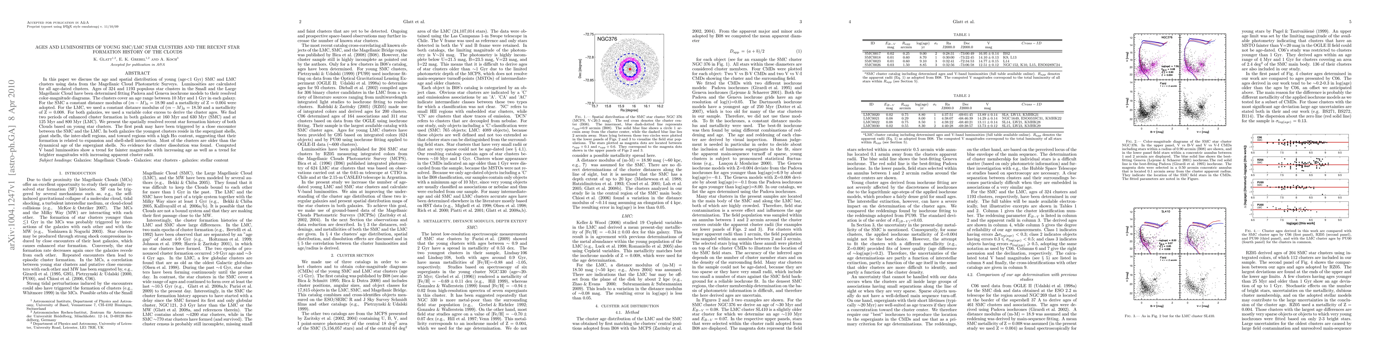 This paper determines the ages and luminosities of young star clusters in the Small and Large Magellanic Clouds, revealing two periods of enhanced star formation at 160Myr and 630Myr in the SMC and at 125Myr and 800Myr in the LMC. The study suggests that recent star formation may have been triggered by a close encounter between the SMC and LMC, with the youngest clusters located in regions of expansion and high H$\alpha$ content.