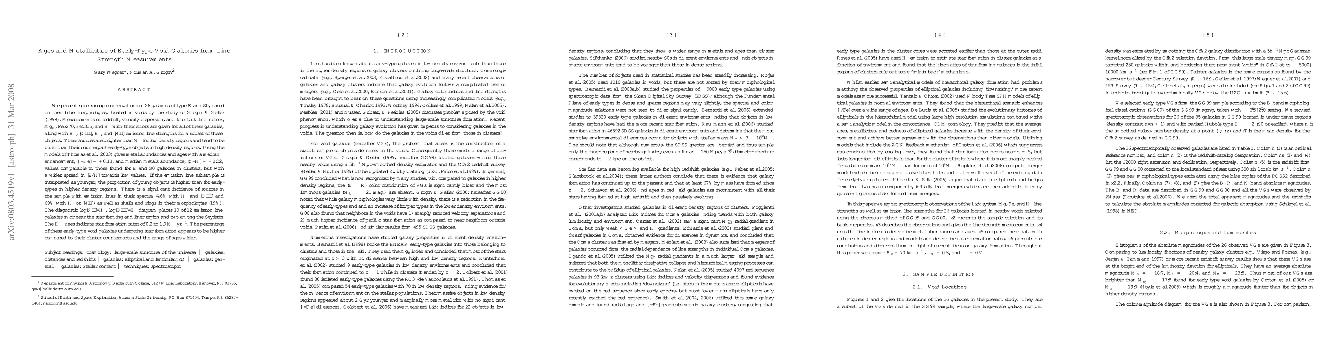 We present spectroscopic observations of 26 galaxies of type E and S0, based on their blue morphologies, located in voids by the study of Grogin & Geller (1999). Measurements of redshift, velocity dispersion, and four Lick line indices, Mgb, Fe5270, Fe5335, and Hbeta with their errors are given for all of these galaxies, along with Hbeta, [OIII], Halpha, and [NII] emission line strengths for a subset of these objects. These sources are brighter than M star for low density regions and tend to be bluer than their counterpart early-type objects in high density regions. Using the models of Thomas et al. (2003) gives metal abundances and ages with a median alpha enhancement, [alpha/Fe] = +0.13, and median metals abundance, [Z/H] = +0.22, values comparable to those found for E and S0 galaxies in clusters, but with a wider spread in [Z/H] towards low values. If the emission line subsample is interpreted as younger, the proportion of young objects is higher than for early-types in higher density regions. There is a significant incidence of sources in the sample with emission lines in their spectra (46% with Hbeta and [OIII] and 69% with Halpha or [NII]) as well as shells and rings in their morphologies (19%). The diagnostic log[NII/Halpha], log[OIII/Hbeta] diagram places 10 of 12 emission line galaxies in or near the star forming and liner region and two among the Seyferts. The Halpha fluxes indicate star formation rates of 0.2 to 1.0 Msun per yr. The percentage of these early-type void galaxies undergoing star formation appears to be higher compared to their cluster counterparts and the range of ages wider.