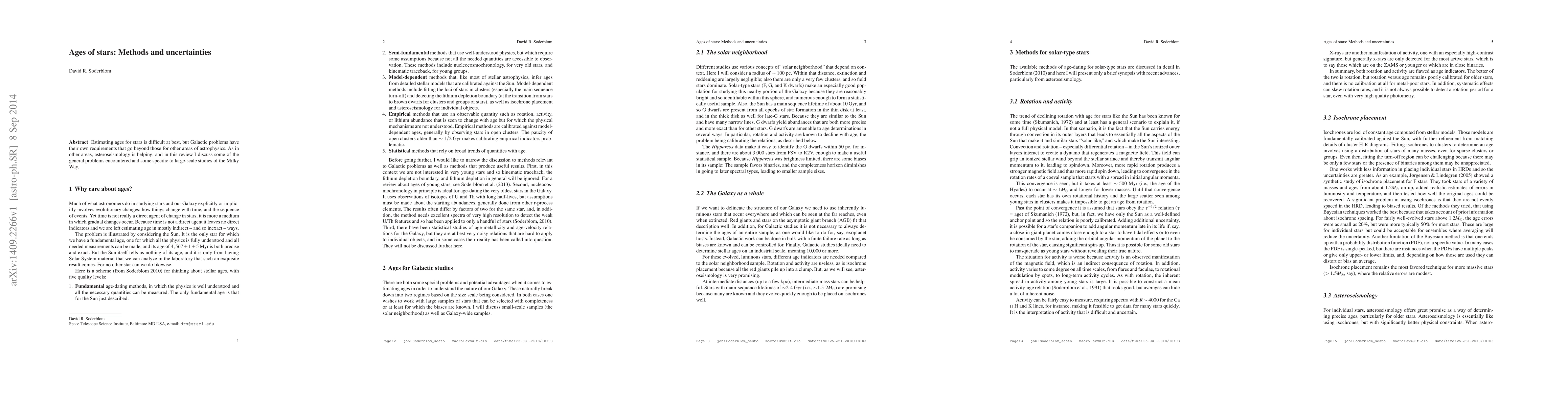 Estimating ages for stars is difficult at best, but Galactic problems have their own requirements that go beyond those for other areas of astrophysics. As in other areas, asteroseismology is helping, and in this review I discuss some of the general problems encountered and some specific to large-scale studies of the Milky Way.