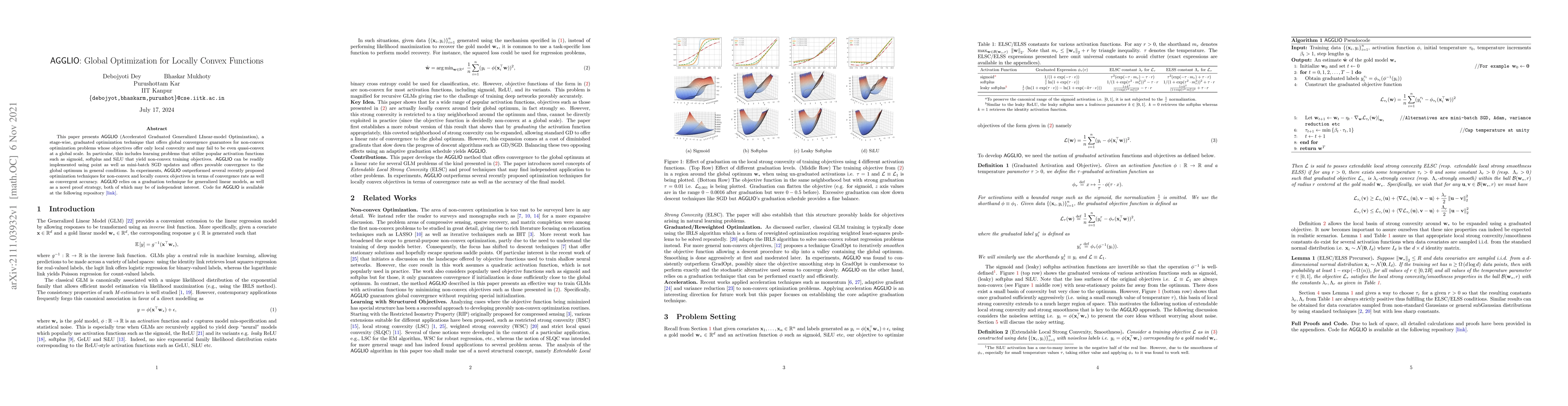 This paper presents AGGLIO (Accelerated Graduated Generalized LInear-model Optimization), a stage-wise, graduated optimization technique that offers global convergence guarantees for non-convex optimization problems whose objectives offer only local convexity and may fail to be even quasi-convex at a global scale. In particular, this includes learning problems that utilize popular activation functions such as sigmoid, softplus and SiLU that yield non-convex training objectives. AGGLIO can be readily implemented using point as well as mini-batch SGD updates and offers provable convergence to the global optimum in general conditions. In experiments, AGGLIO outperformed several recently proposed optimization techniques for non-convex and locally convex objectives in terms of convergence rate as well as convergent accuracy. AGGLIO relies on a graduation technique for generalized linear models, as well as a novel proof strategy, both of which may be of independent interest.