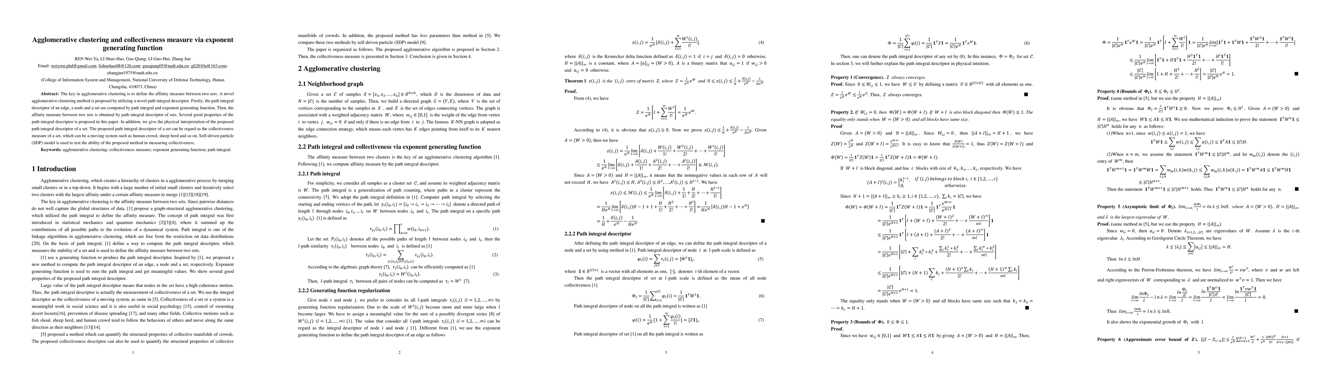 A novel agglomerative clustering method is proposed using path integral theory to define affinity measures between sets, offering a collectiveness measure that can model human crowds and other moving systems.