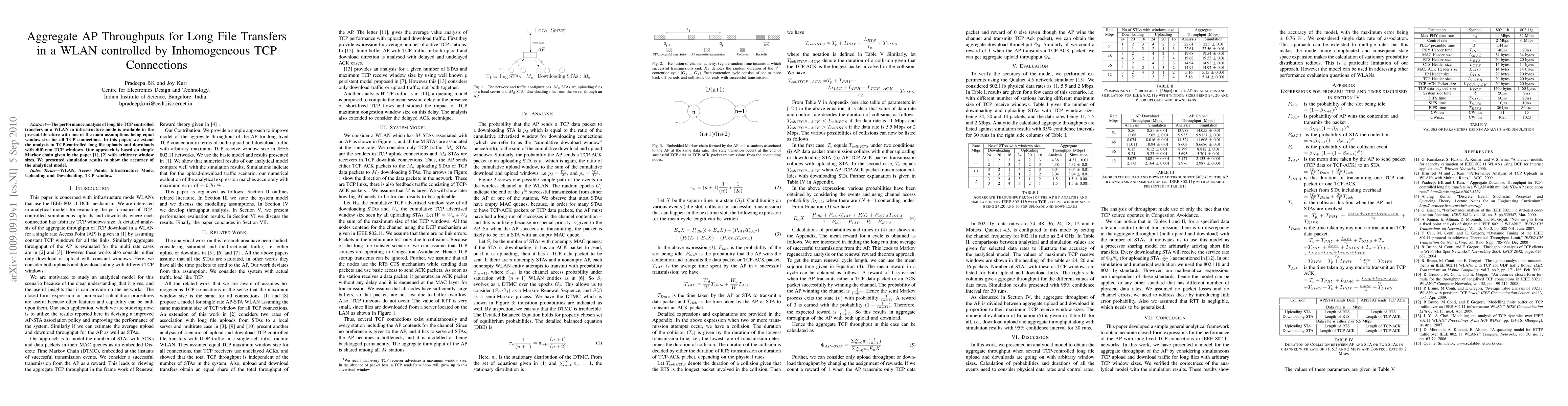 This paper analyzes the performance of long file transfers in a WLAN using TCP connections with varying window sizes, extending previous models that assumed equal window sizes. The study employs a Markov chain model and simulation results to validate the analytical approach.