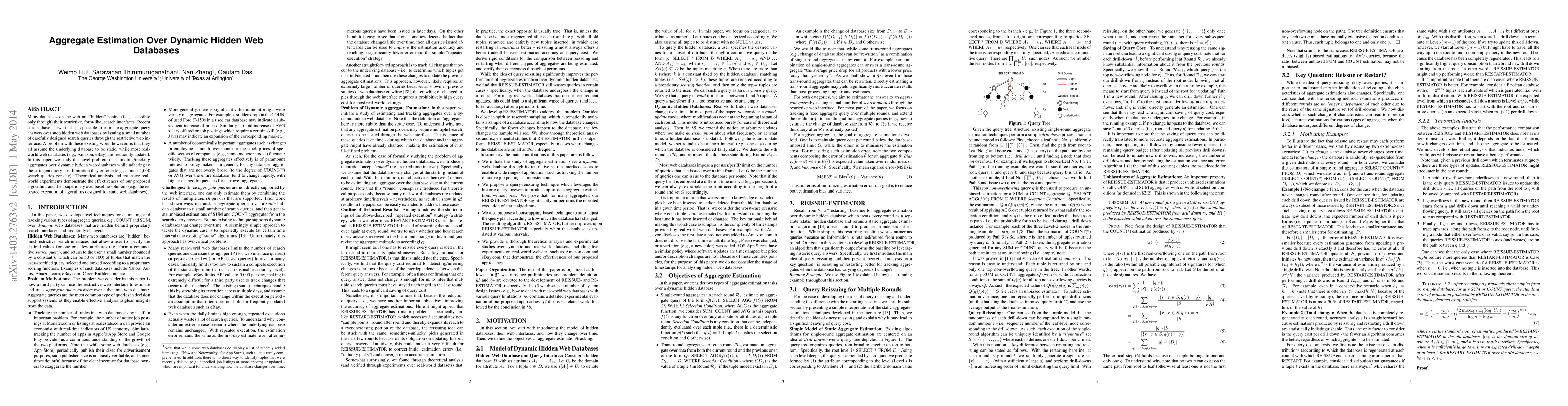 This paper addresses the challenge of estimating aggregate query answers over dynamic, hidden web databases that frequently update, unlike static databases. The authors propose novel algorithms to track these aggregates while adhering to the strict query-cost limitations imposed by the databases, demonstrating their effectiveness through theoretical analysis and real-world experiments.