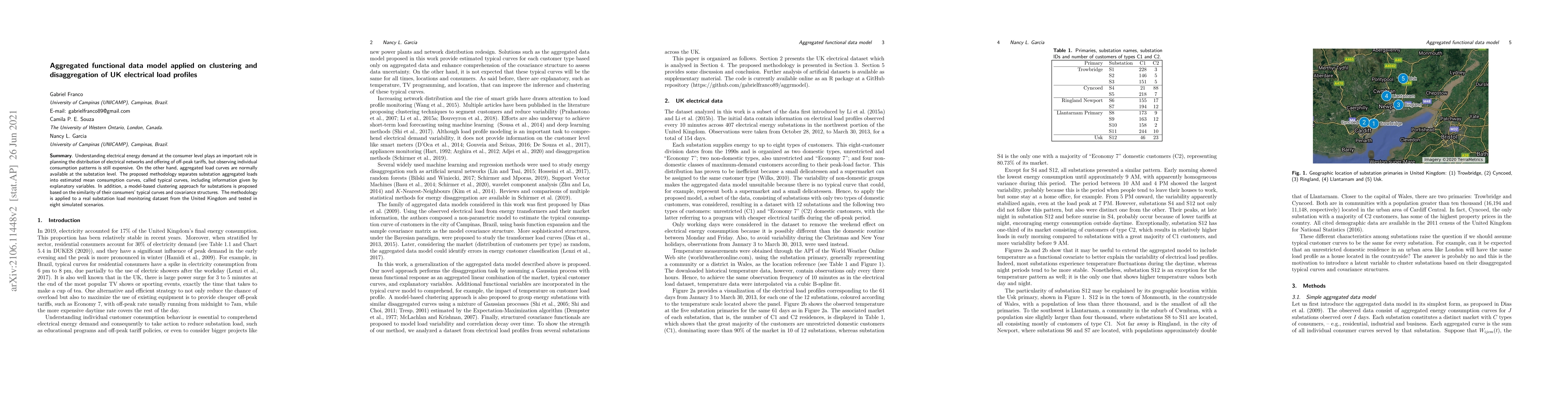 Understanding electrical energy demand at the consumer level plays an important role in planning the distribution of electrical networks and offering of off-peak tariffs, but observing individual consumption patterns is still expensive. On the other hand, aggregated load curves are normally available at the substation level. The proposed methodology separates substation aggregated loads into estimated mean consumption curves, called typical curves, including information given by explanatory variables. In addition, a model-based clustering approach for substations is proposed based on the similarity of their consumers typical curves and covariance structures. The methodology is applied to a real substation load monitoring dataset from the United Kingdom and tested in eight simulated scenarios.