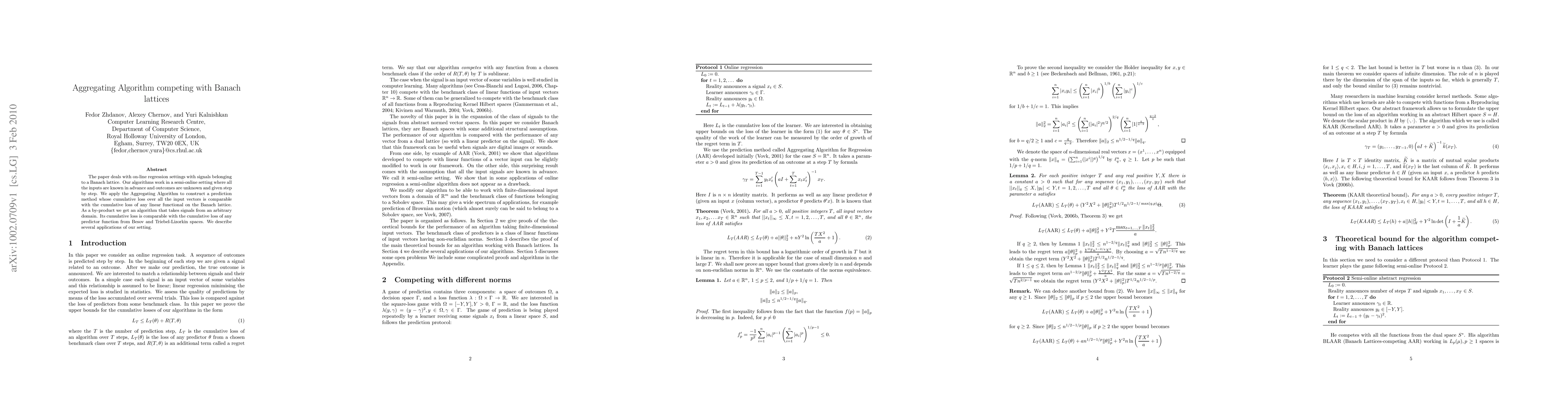 The Aggregating Algorithm is compared to Banach lattices for online regression, achieving cumulative loss comparable to linear functionals on the lattice, with applications in arbitrary domains.