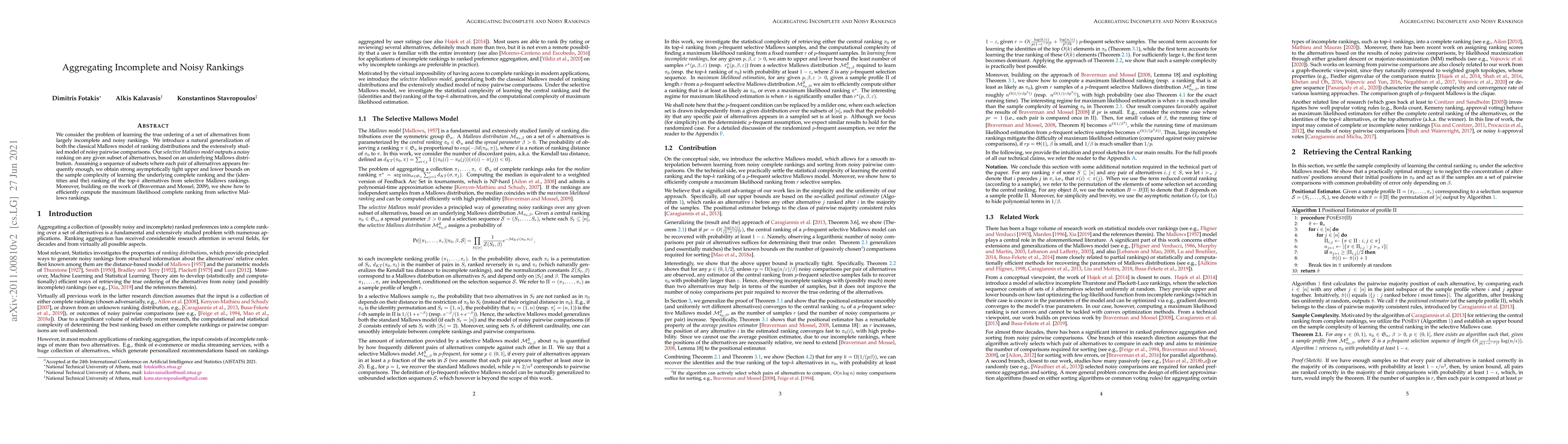 This paper addresses the challenge of inferring the true order of alternatives from incomplete and noisy rankings. It proposes a selective Mallows model, generalizing classical Mallows and noisy pairwise comparison models, and provides bounds on the sample complexity for learning complete and top-k rankings. It also presents an efficient method for computing the maximum likelihood complete ranking.
