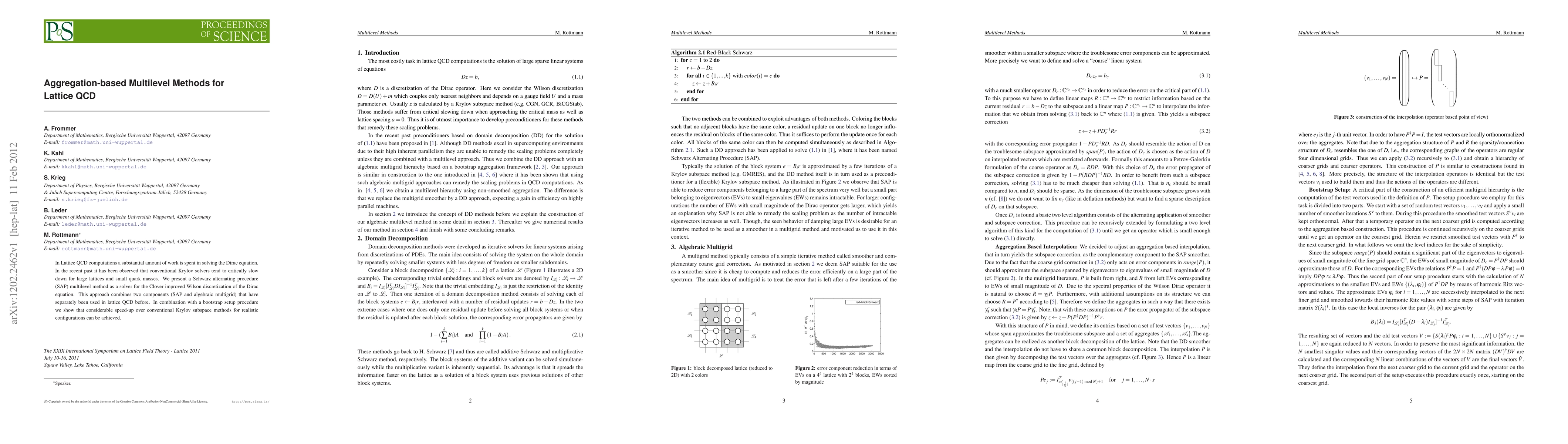 Researchers developed a multilevel method called Schwarz Alternating Procedure (SAP) to solve the Dirac equation in Lattice QCD computations, achieving significant speed-ups over conventional Krylov subspace methods for large lattices and small quark masses.