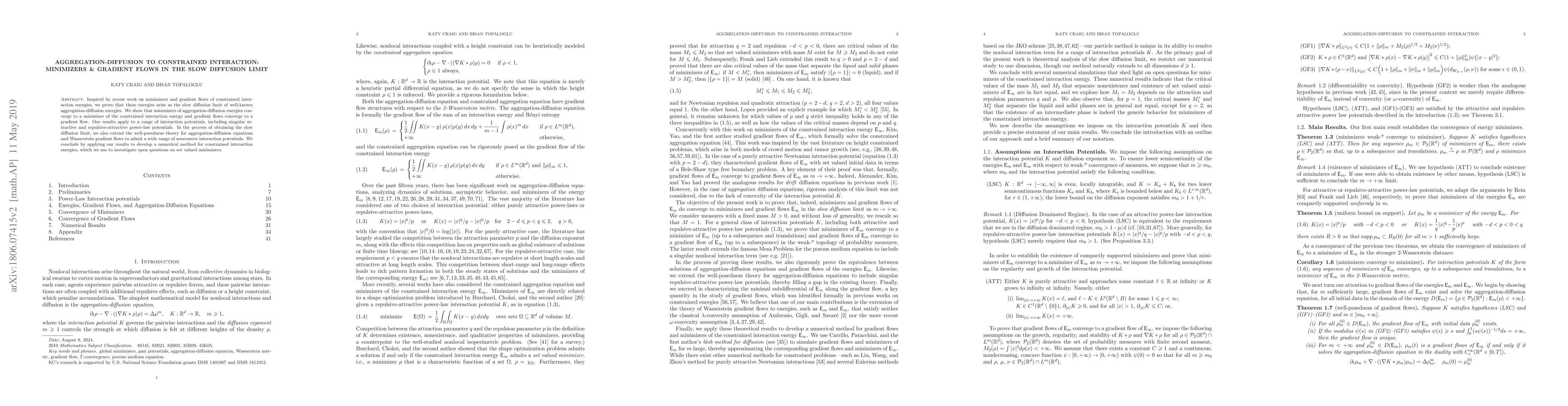 This paper demonstrates that constrained interaction energies emerge as the slow diffusion limit of aggregation-diffusion energies, showing convergence of minimizers and gradient flows. The study extends well-posedness theory for these equations and applies the findings to develop a numerical method for investigating set-valued minimizers.