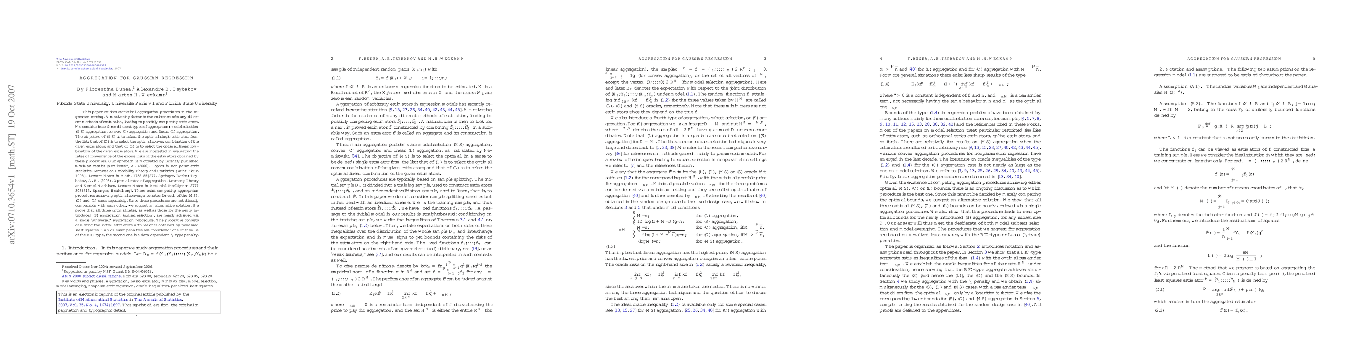 This paper studies statistical aggregation procedures in the regression setting. A motivating factor is the existence of many different methods of estimation, leading to possibly competing estimators. We consider here three different types of aggregation: model selection (MS) aggregation, convex (C) aggregation and linear (L) aggregation. The objective of (MS) is to select the optimal single estimator from the list; that of (C) is to select the optimal convex combination of the given estimators; and that of (L) is to select the optimal linear combination of the given estimators. We are interested in evaluating the rates of convergence of the excess risks of the estimators obtained by these procedures. Our approach is motivated by recently published minimax results [Nemirovski, A. (2000). Topics in non-parametric statistics. Lectures on Probability Theory and Statistics (Saint-Flour, 1998). Lecture Notes in Math. 1738 85--277. Springer, Berlin; Tsybakov, A. B. (2003). Optimal rates of aggregation. Learning Theory and Kernel Machines. Lecture Notes in Artificial Intelligence 2777 303--313. Springer, Heidelberg]. There exist competing aggregation procedures achieving optimal convergence rates for each of the (MS), (C) and (L) cases separately. Since these procedures are not directly comparable with each other, we suggest an alternative solution. We prove that all three optimal rates, as well as those for the newly introduced (S) aggregation (subset selection), are nearly achieved via a single ``universal'' aggregation procedure. The procedure consists of mixing the initial estimators with weights obtained by penalized least squares. Two different penalties are considered: one of them is of the BIC type, the second one is a data-dependent $\ell_1$-type penalty.