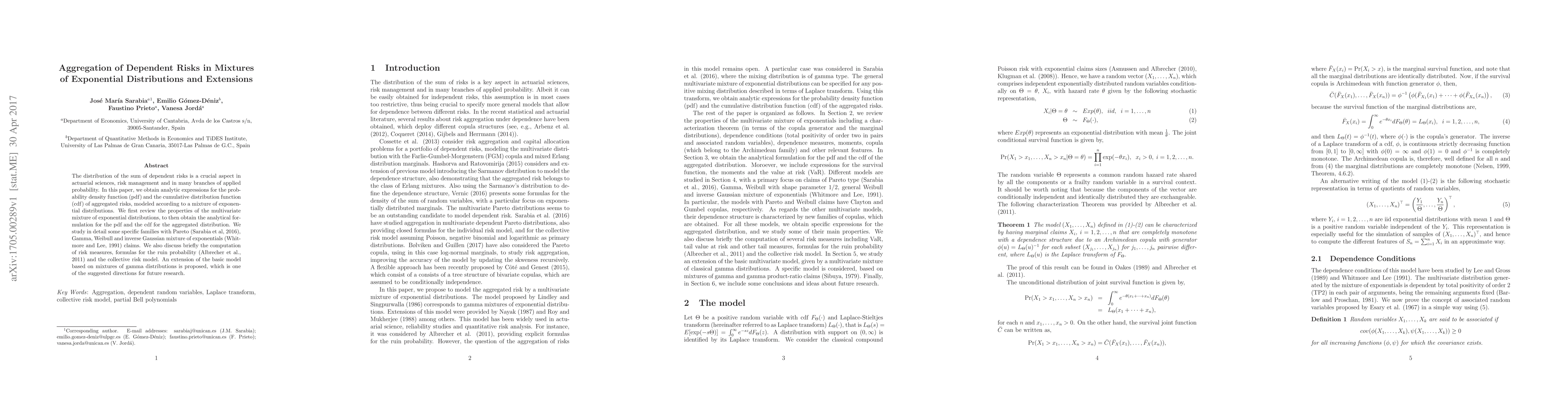 This paper derives analytic expressions for the probability density and cumulative distribution functions of aggregated dependent risks modeled by a mixture of exponential distributions. It extends the basic model to mixtures of gamma distributions, proposing it as a future research direction.