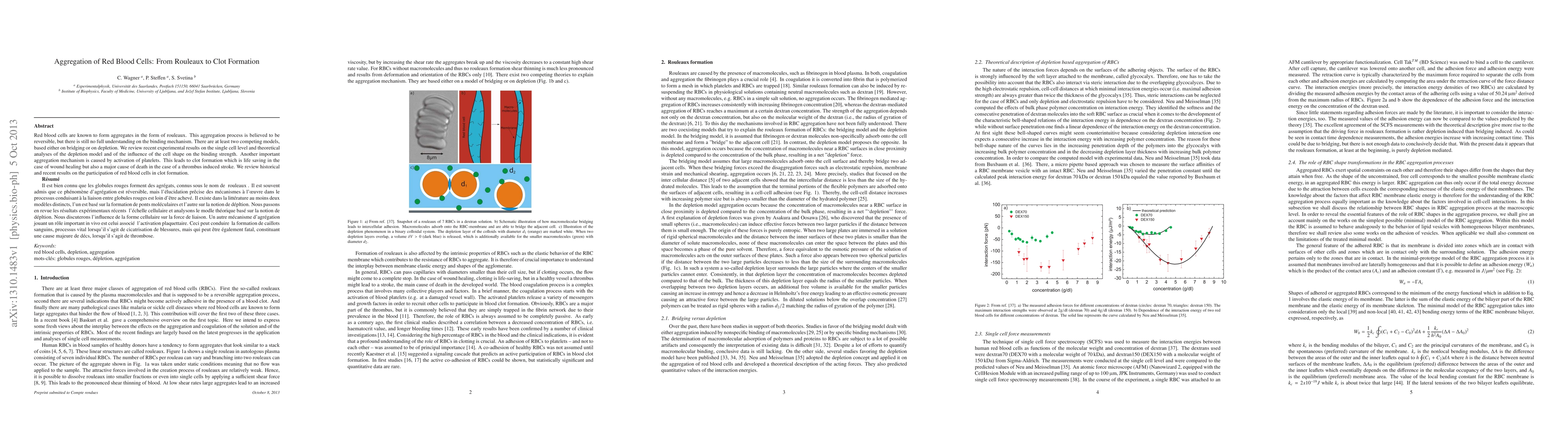This paper reviews the mechanisms behind red blood cell aggregation, including the reversible rouleaux formation and the competing models of binding. It also examines the role of red blood cells in clot formation, highlighting the dual nature of this process in both beneficial wound healing and harmful stroke conditions.