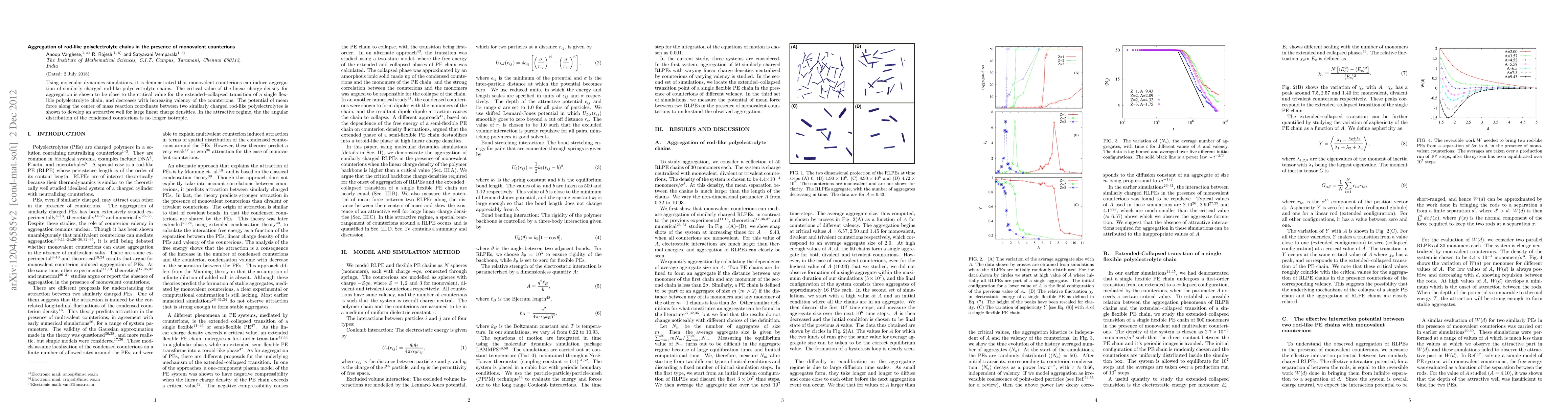 This study uses molecular dynamics simulations to show that monovalent counterions can induce aggregation of rod-like polyelectrolyte chains, with aggregation occurring near the critical charge density for extended-collapsed transition. The aggregation is more pronounced with higher counterion valency, and the interaction potential between chains is linked to the angular distribution of condensed counterions.