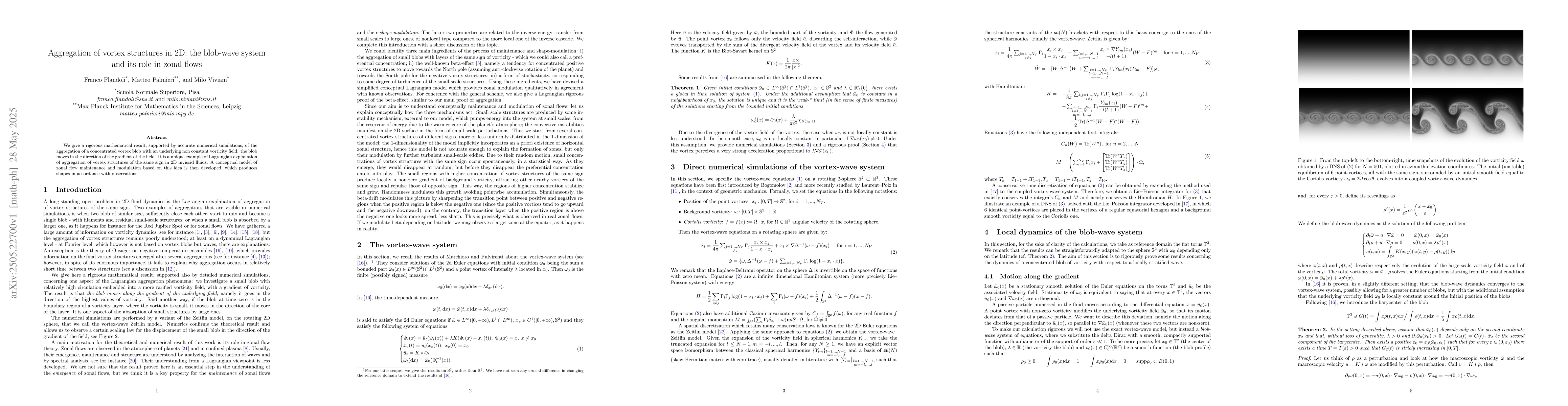 The development of a mathematical framework and numerical simulations explaining the aggregation of vortex structures via the blob-wave system in 2D inviscid fluids.