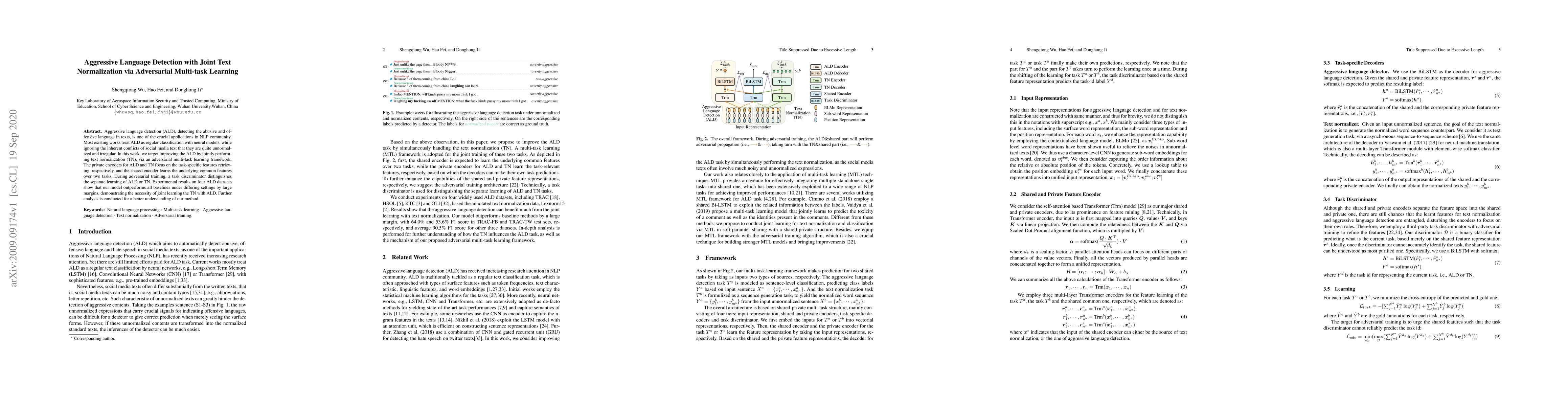 This paper proposes an adversarial multi-task learning framework to improve aggressive language detection by jointly performing text normalization. The model outperforms existing methods on multiple datasets, demonstrating the benefits of integrating text normalization with aggressive language detection.