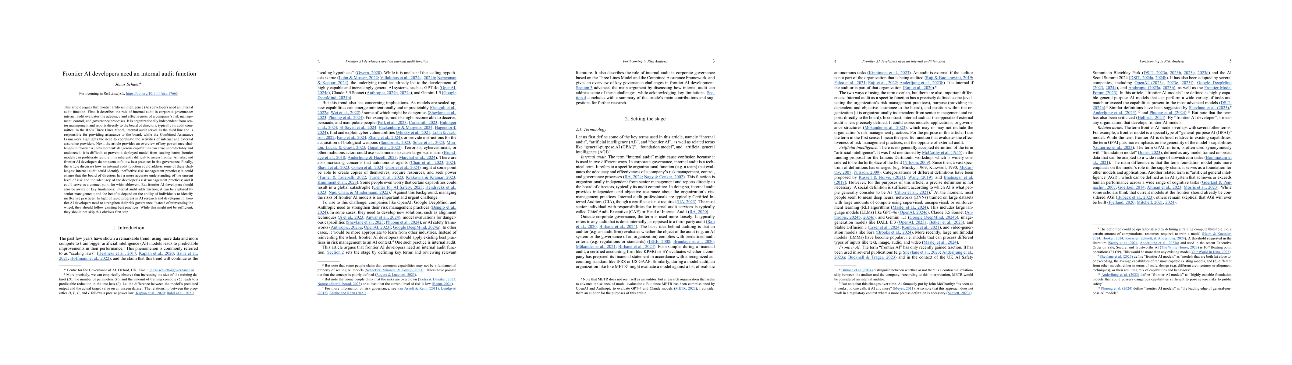 The paper advocates for AGI labs to establish an internal audit function to enhance risk management, ensuring better oversight and compliance with corporate governance best practices. Despite acknowledging limitations such as costs and lack of empirical evidence, it provides a blueprint for setting up such a team based on international standards.