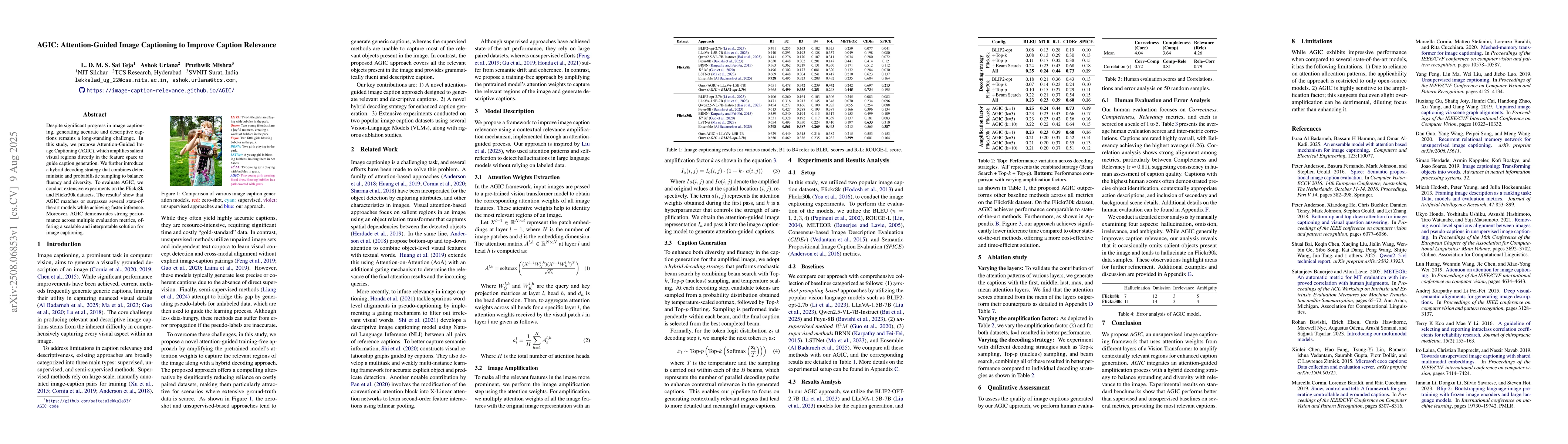 The main technical contribution is the Attention-Guided Image Captioning (AGIC) framework, which combines attention-guided image amplification with a hybrid decoding strategy for improved caption generation.