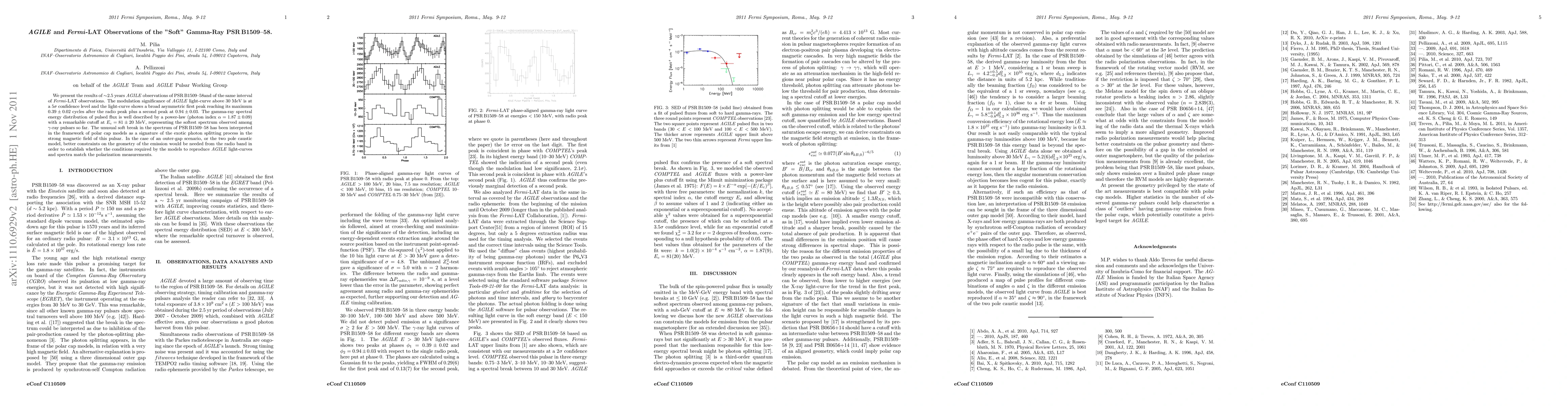 We present the results of 2.5 years of AGILE observations of PSR B1509-58 and of the same interval of Fermi observations. The modulation significance of AGILE light curve above 30 MeV is at a 5 sigma confidence level and the light curve shows a broad asymmetric first peak reaching its maximum $0.39 \pm 0.02$ cycles after the radio peak plus a second peak at$0.94 \pm 0.03$. The gamma-ray spectral energy distribution of pulsed flux is well described by a power-law (photon index $\alpha=1.87\pm0.09$) with a remarkable cutoff at below 100 MeV, representing the softest spectrum observed among gamma-ray pulsars so far. The unusual soft break in the spectrum of PSR B1509-58 has been interpreted in the framework of polar cap models as a signature of the exotic photon splitting process in the strong magnetic field of this pulsar. In the case of an outer-gap scenario, or the two pole caustic model, better constraints on the geometry of the emission would be needed from the radio band in order to establish whether the conditions required by the models to reproduce AGILE light curves and spectra match the polarization measurements.