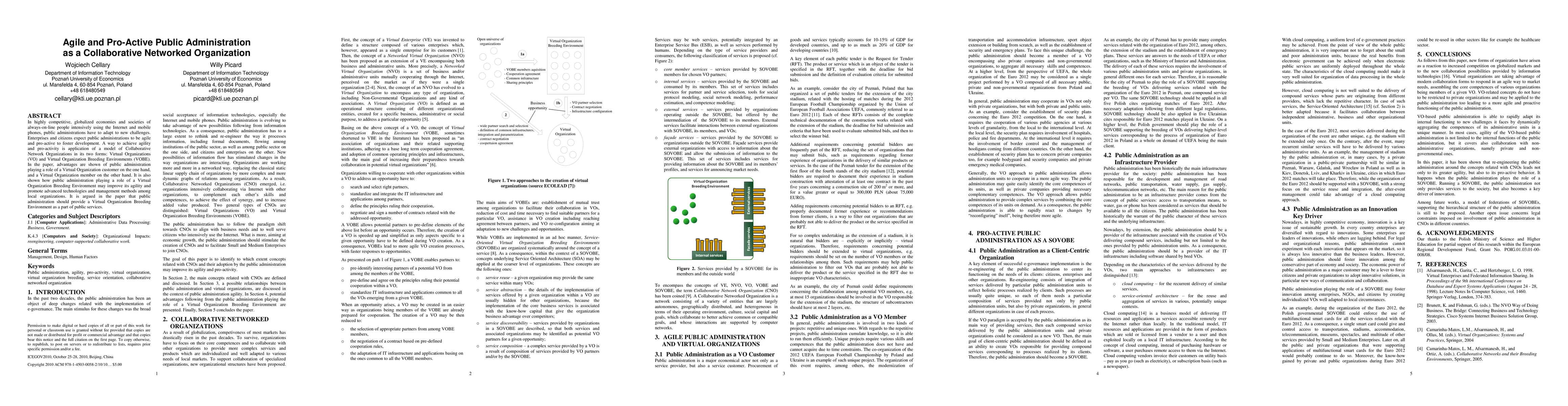 This paper explores how public administrations can enhance agility and pro-activity through adopting Collaborative Network Organizations, specifically Virtual Organizations and Virtual Organization Breeding Environments. It argues that public administrations should act both as Virtual Organization customers and members, and as a Virtual Organization Breeding Environment to foster advanced technologies and management methods.