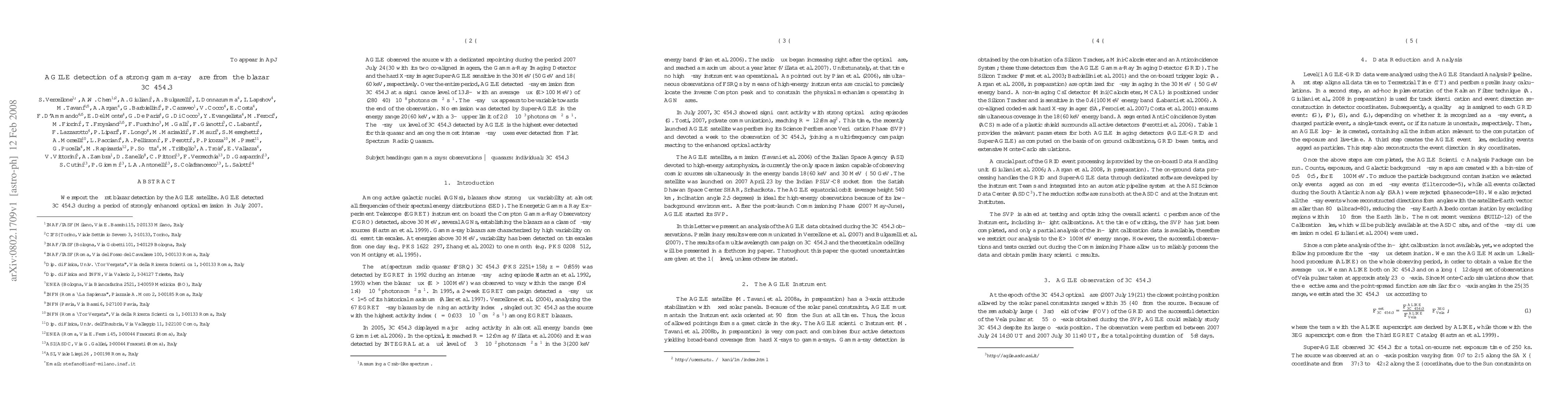 The AGILE satellite detected a strong gamma-ray flare from the blazar 3C 454.3 in July 2007, marking the first blazar detection by AGILE. This detection occurred during a period of enhanced optical emission and represents the highest gamma-ray flux ever recorded for this quasar.