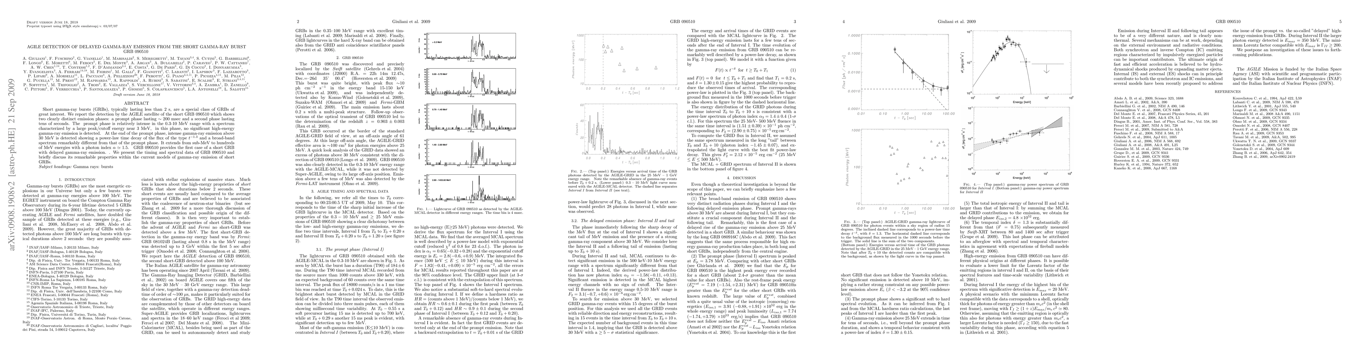 The AGILE satellite detected a short gamma-ray burst (GRB) 090510 with two emission phases: a prompt phase lasting ~200 msec followed by a delayed phase lasting tens of seconds, showing a broad-band spectrum that differs from the prompt phase.