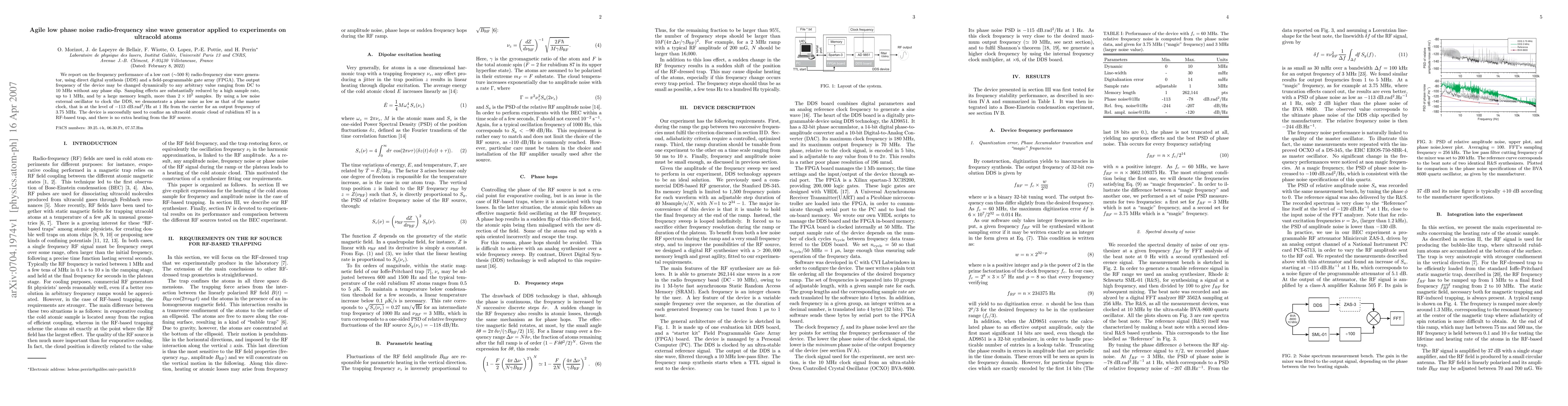 Researchers developed a low-cost radio-frequency sine wave generator that can produce arbitrary frequencies with low phase noise, enabling the confine of ultracold atomic clouds without heating.