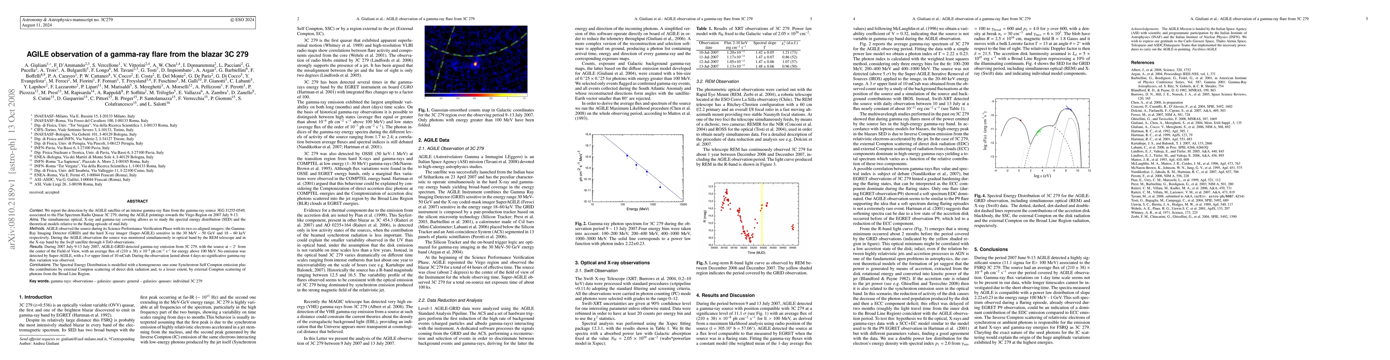 The AGILE satellite detected an intense gamma-ray flare from the blazar 3C 279 during observations in mid-July 2007, with no significant flux variation over four days. The spectral energy distribution was modeled using a combination of synchrotron self-Compton emission and external Compton scattering processes.