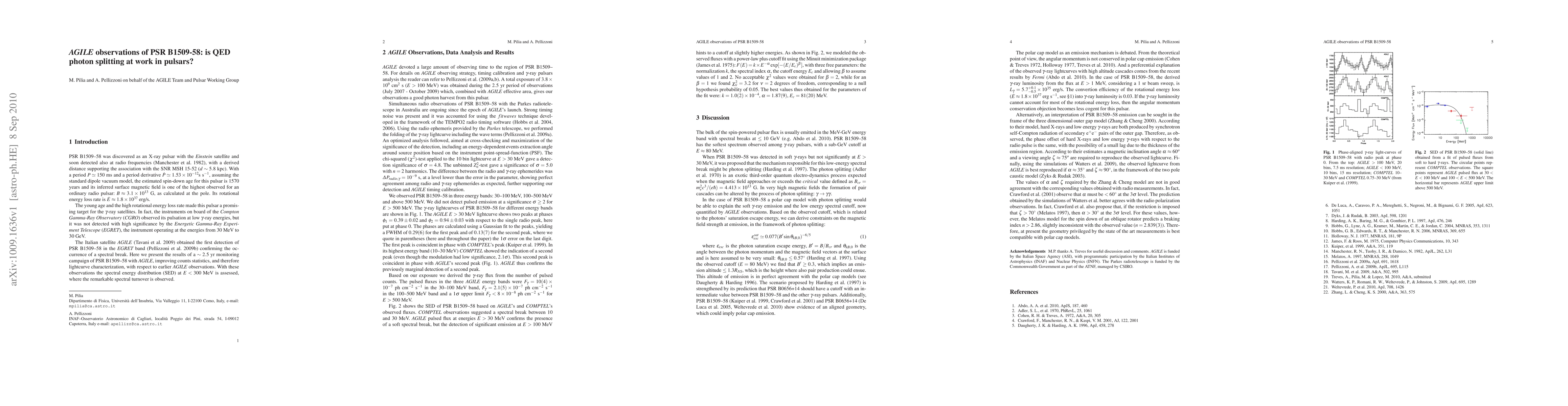 We present the results of new AGILE observations of PSR B1509-58 performed over a period of $\sim$2.5 years following the detection obtained with preliminary data. The modulation significance of the lightcurve above 30 MeV is at a 5$\sigma$ confidence level and the lightcurve is similar to those found earlier up to 30 MeV by COMPTEL: a broad asymmetric first peak reaching its maximum $0.39 \pm 0.02$ cycles after the radio peak plus a second peak at $0.94 \pm 0.03$. The $\gamma$-ray spectral energy distribution of pulsed flux is well described by a power-law (photon index $\alpha=1.87\pm0.09$) with a remarkable cutoff at $E_c=81\pm 20$ MeV, representing the softest spectrum observed among $\gamma$-ray pulsars so far. The unusual soft break in the spectrum of PSR B1509-58 has been interpreted in the framework of polar cap models as a signature of the exotic photon splitting process in the strong magnetic field of this pulsar. In the case of an outer-gap scenario, or the two pole caustic model, better constraints on the geometry of the emission would be needed from the radio band in order to establish whether the conditions required by the models to reproduce AGILE lightcurves and spectra match the polarization measurements.