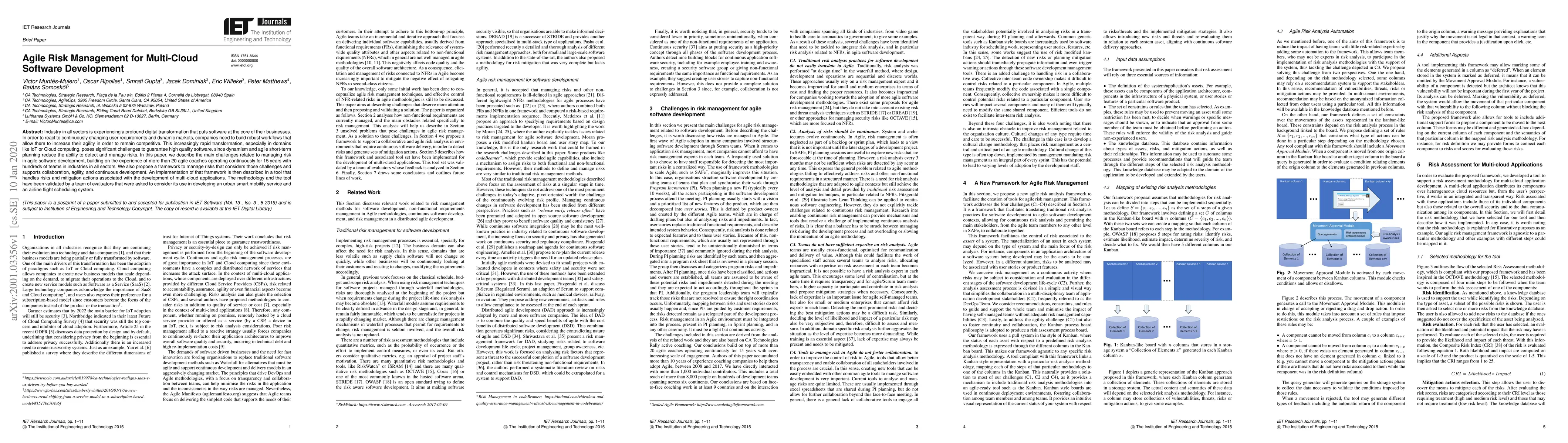 This paper explores the challenges of managing risks in agile software development, particularly in multi-cloud environments. It proposes a comprehensive framework that enhances collaboration and agility while addressing these challenges, validated through practical applications in smart mobility and flight scheduling systems.