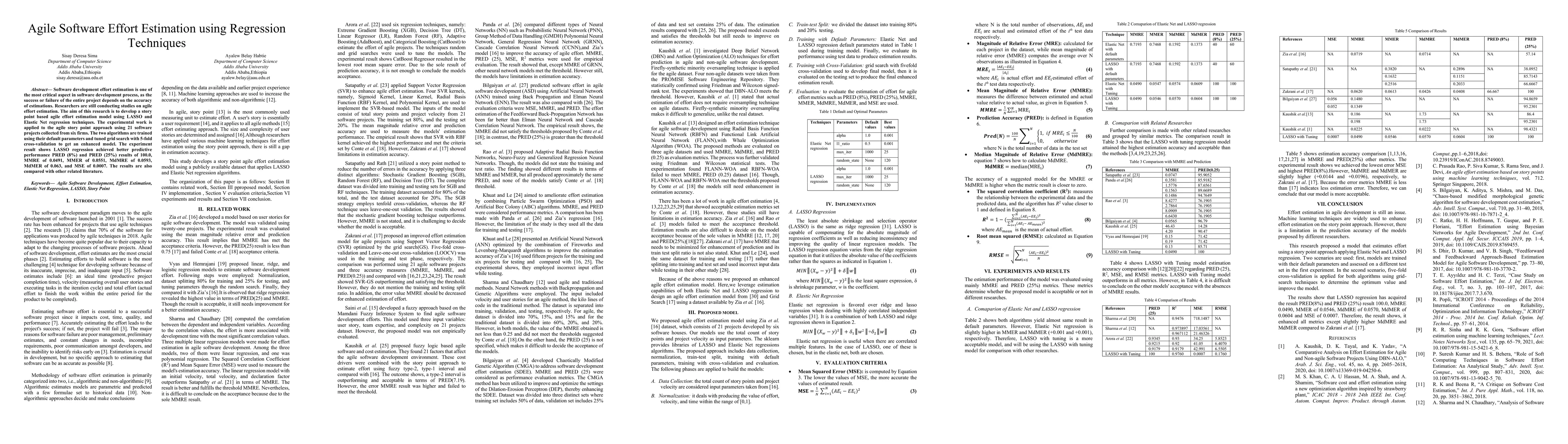 This work stands out by systematically comparing multiple regression techniques in the context of agile development and identifying the most effective models for effort estimation, providing practical insights for software project management.