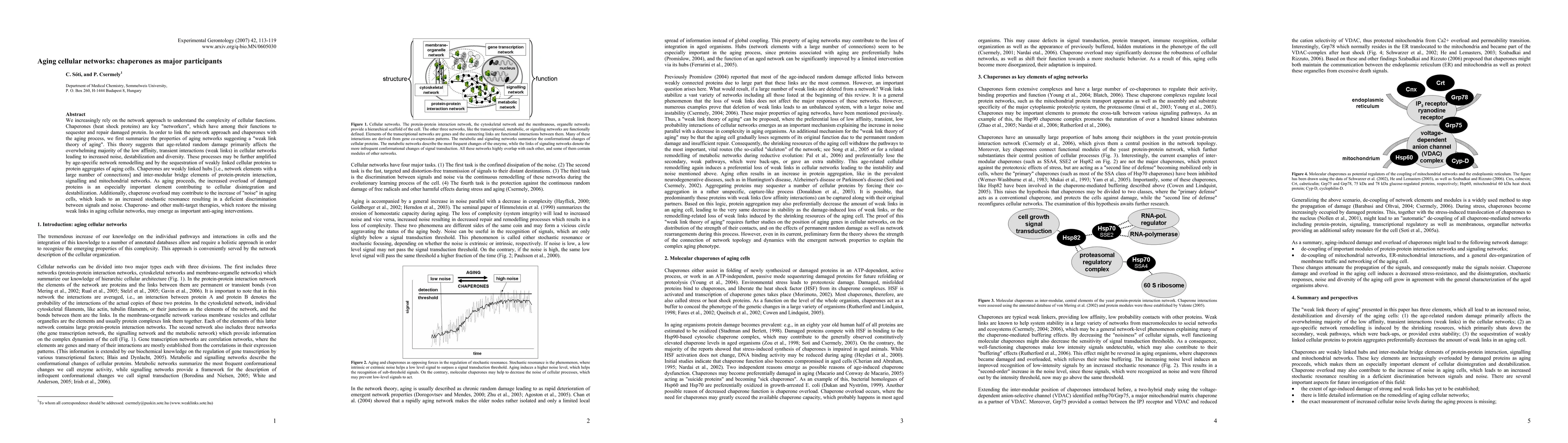 This paper explores how chaperones (heat shock proteins) play a crucial role in cellular networks, particularly in aging processes. It proposes a "weak link theory of aging," suggesting that age-related damage primarily destabilizes transient interactions in cellular networks, which chaperones help manage. As aging progresses, chaperone overload may increase cellular noise, potentially leading to anti-aging therapies that restore network stability.