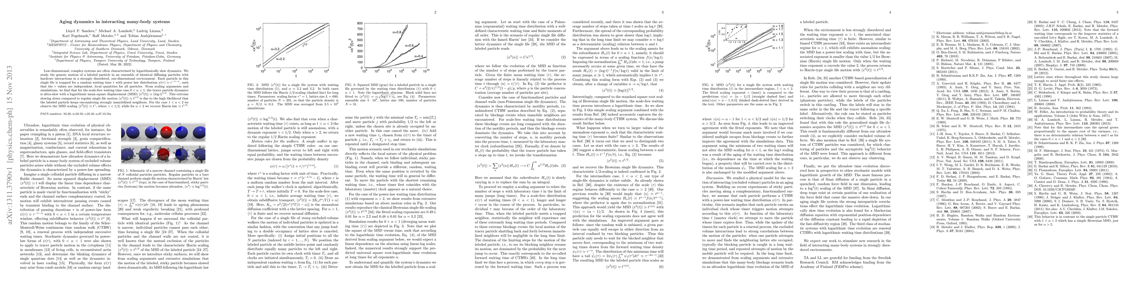 Low-dimensional, complex systems are often characterized by logarithmically slow dynamics. We study the generic motion of a labeled particle in an ensemble of identical diffusing particles with hardcore interactions in a strongly disordered, one-dimensional environment. Each particle in this single file is trapped for a random waiting time $\tau$ with power law distribution $\psi(\tau)\simeq\tau^{-1- \alpha}$, such that the $\tau$ values are independent, local quantities for all particles. From scaling arguments and simulations, we find that for the scale-free waiting time case $0<\alpha<1$, the tracer particle dynamics is ultra-slow with a logarithmic mean square displacement (MSD) $\langle x^2(t)\rangle\simeq(\log t)^{1/2}$. This extreme slowing down compared to regular single file motion $\langle x^2(t)\rangle\simeq t^{1/2}$ is due to the high likelihood that the labeled particle keeps encountering strongly immobilized neighbors. For the case $1<\alpha<2$ we observe the MSD scaling $\langle x^2(t)\rangle\simeq t^{\gamma}$, where $\gamma<1/2$, while for $\alpha>2$ we recover Harris law $\simeq t^{1/2}$.