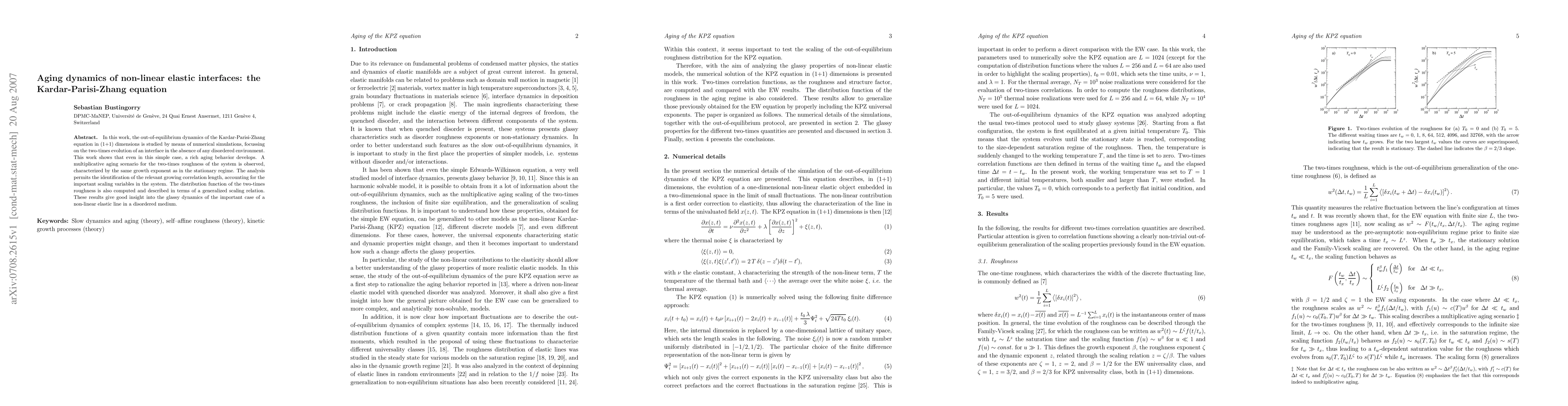 This research investigates the aging dynamics of the Kardar-Parisi-Zhang equation in a (1+1) dimensional system through numerical simulations, revealing a complex aging behavior and a multiplicative aging scenario for interface roughness. The study identifies relevant scaling variables and describes the distribution function of roughness via a generalized scaling relation, offering insights into the dynamics of non-linear elastic interfaces.
