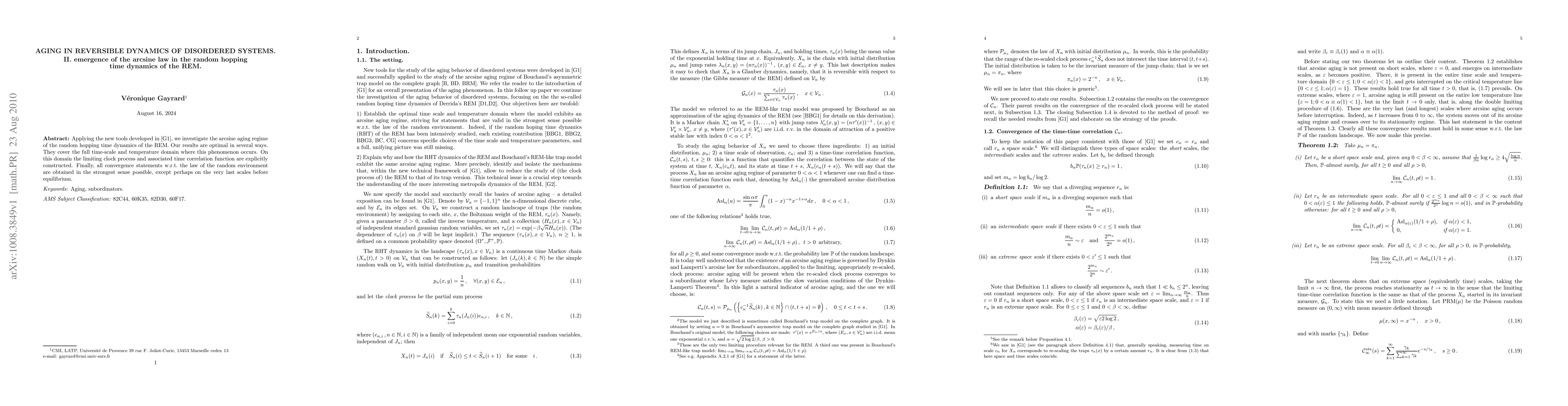 This paper explores the arcsine aging regime in the random hopping time dynamics of the Random Energy Model (REM), utilizing new analytical tools. It provides optimal results covering the full time-scale and temperature domain, explicitly constructing the limiting clock process and associated time correlation function.