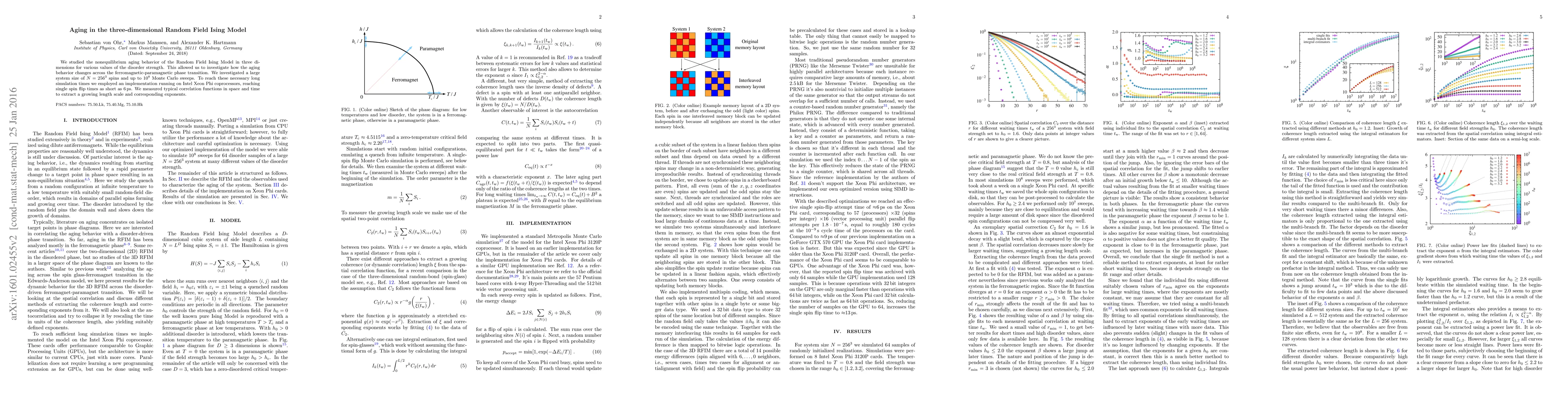 This paper investigates the nonequilibrium aging behavior of the three-dimensional Random Field Ising Model, focusing on changes across the ferromagnetic-paramagnetic phase transition. Using extensive simulations on Intel Xeon Phi coprocessors, researchers measured correlation functions to determine a growing length scale and associated exponents.