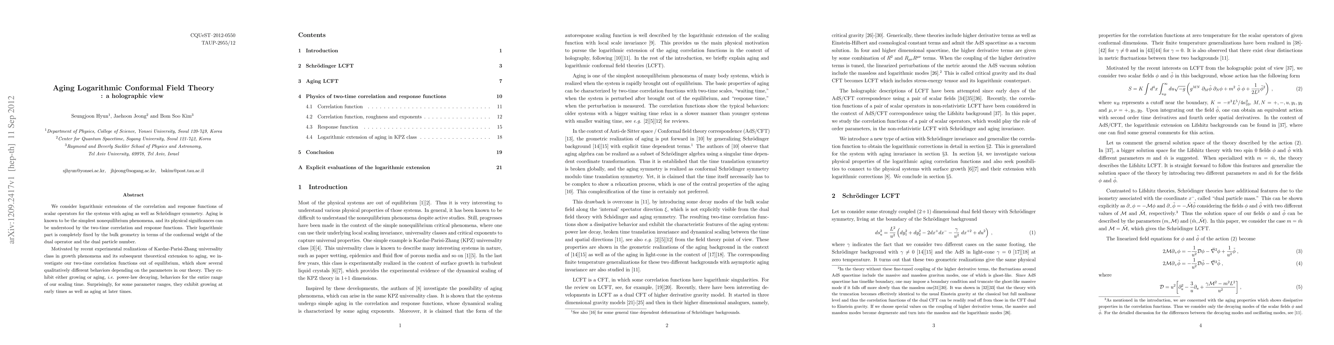 This research paper explores aging phenomena in statistical mechanics through logarithmic conformal field theory, revealing diverse behaviors depending on parameters and a surprising combination of growing and aging at different times.