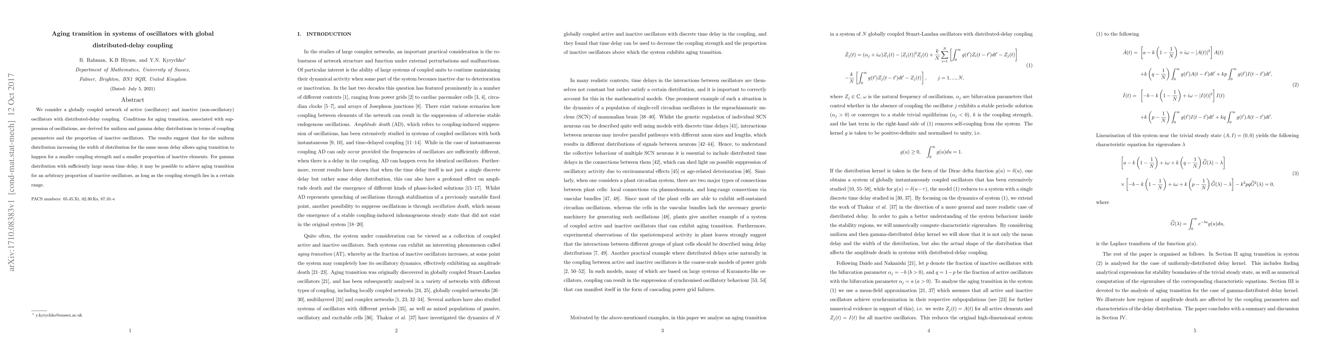 Researchers study how a network of oscillators with varying delay distributions transition to aging states, finding that wider distribution can lead to earlier transitions at lower coupling strengths.