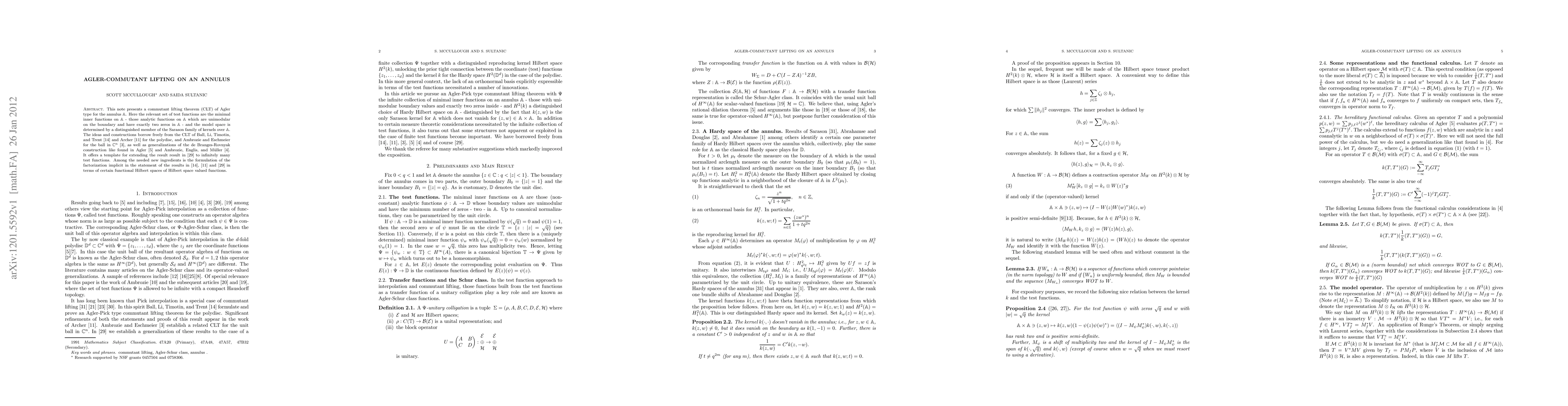 Researchers developed a commutant lifting theorem for an annulus, enabling the creation of a test function space that is uniquely determined by its reproducing kernel having no zeros. This achievement has significant implications for the study of inner functions in functional analysis.